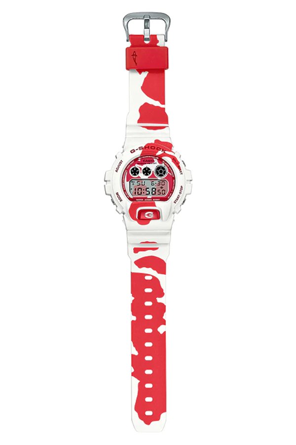 The DW-5600JK is a Nishikigoi design model done in the image of a Showa Sanshoku koi. Black basic coloring is accented by red and white coloring and the image of a red and white Nishikigoi printed on the face. Turning on illumination emphasizes a pattern that is coordinated with the face design.