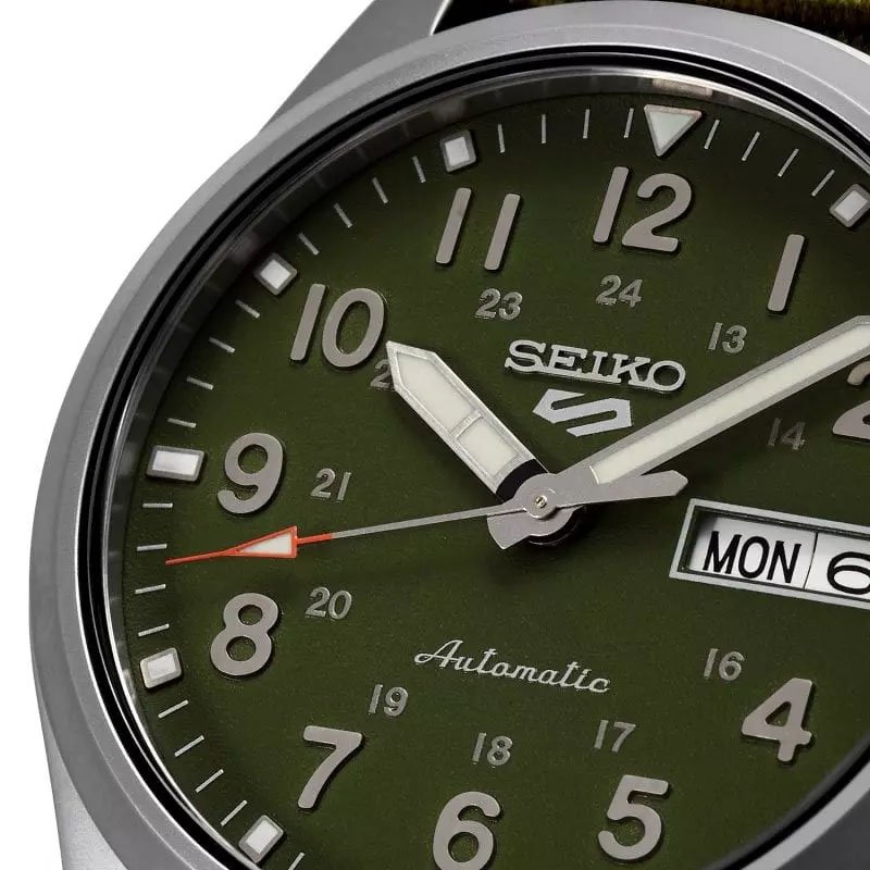 ‘’5’’ represents the original five key features of every Seiko 5 still present today: Automatic movement, Day-date display, Water Resistance, Recessed crown and Durable case and bracelet.