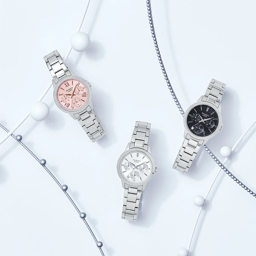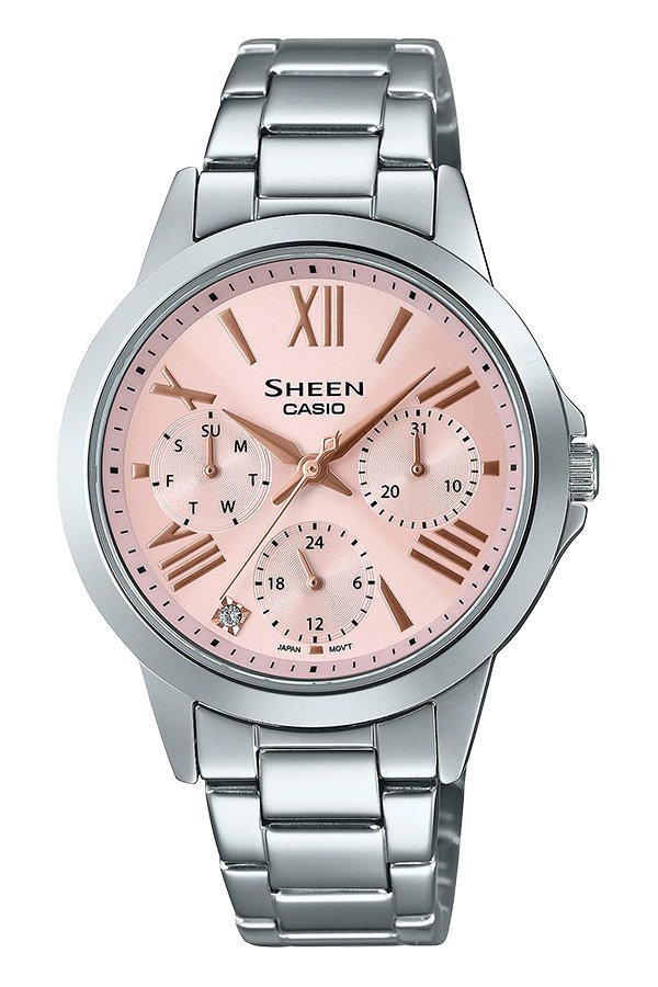 Shine and shimmer in an elegant timepiece with multi-dial analog design for sophisticated functionality.