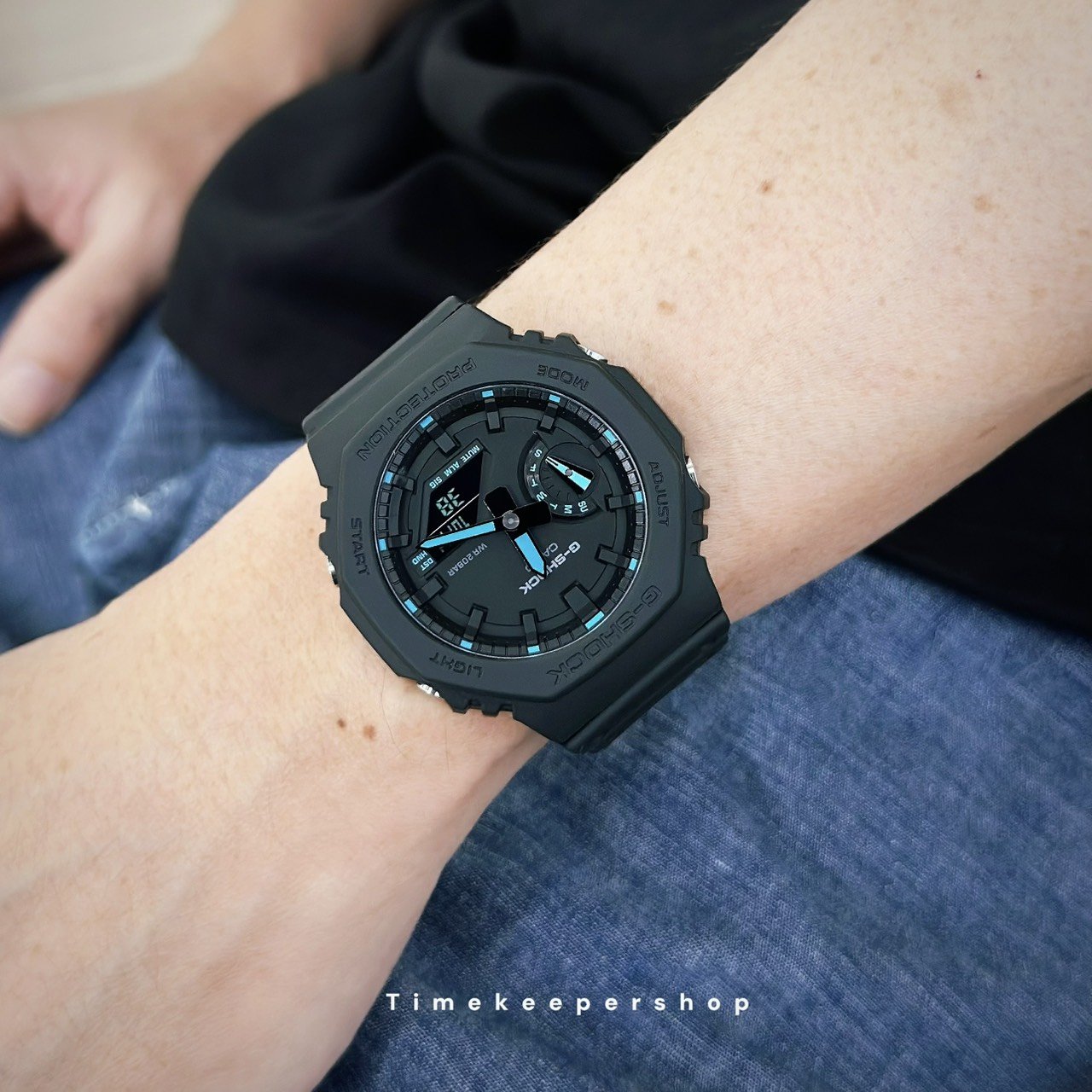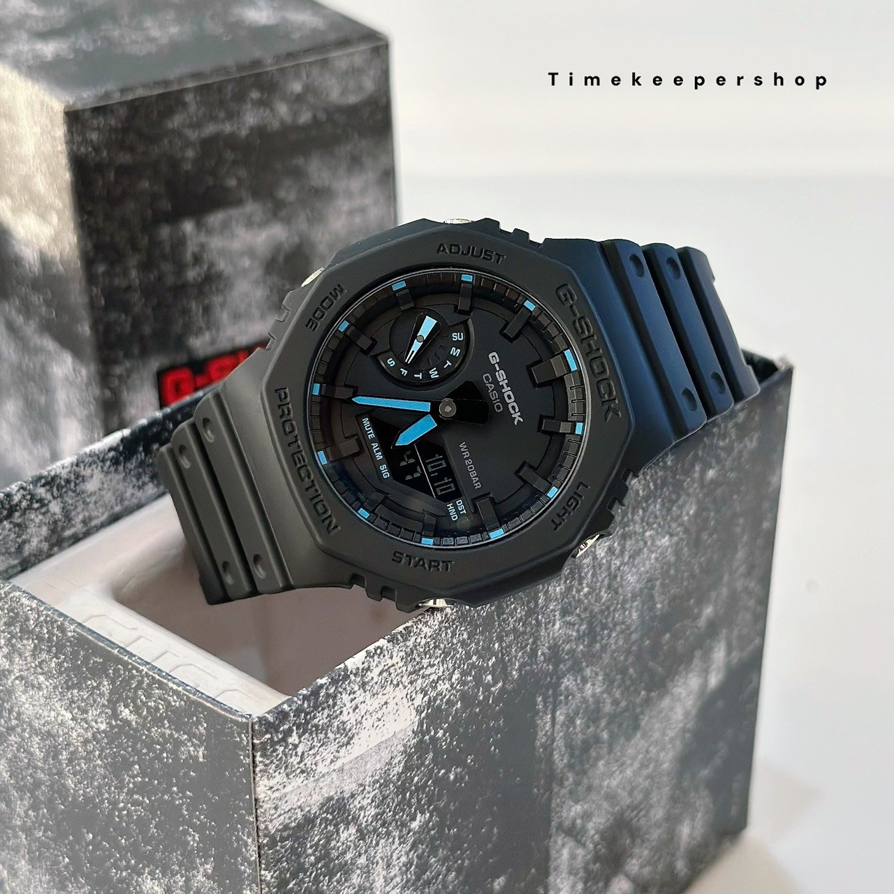 The octagonal shape and streamlined design of the GA-2100 puts on textured matte black and vibrant neon color for a stylishly cool new look. Hour and minute hands with phosphorescent paint stay visible in the dark to keep you on your game all day and night.