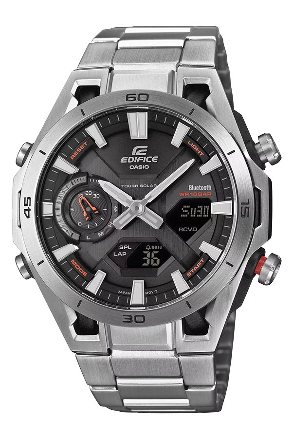 More than just a stylish presence, the EDIFICE ECB-2300 SOSPENSIONE delivers full-on functionality, as well. Smartphone pairing via Bluetooth® delivers automatic time correction and makes it easy to configure world time and other functions from the app. With Tough Solar for stable operation of functions, scratch-resistant sapphire crystal, practical 100-meter water resistance and more, you’ll be at peak performance.