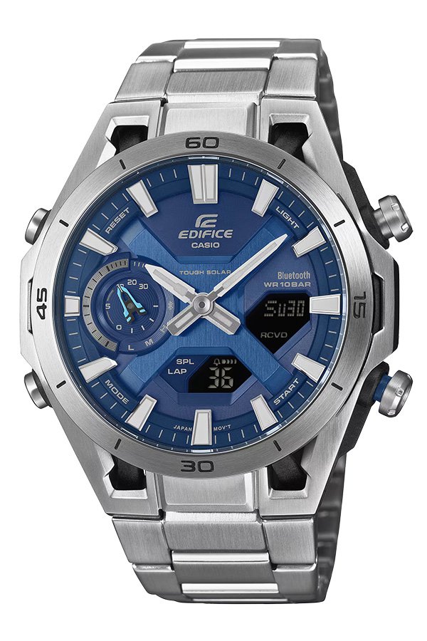 More than just a stylish presence, the EDIFICE ECB-2300 SOSPENSIONE delivers full-on functionality, as well. Smartphone pairing via Bluetooth® delivers automatic time correction and makes it easy to configure world time and other functions from the app. With Tough Solar for stable operation of functions, scratch-resistant sapphire crystal, practical 100-meter water resistance and more, you’ll be at peak performance.
