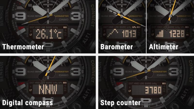 คุณสามารถกดปุ่มใช้งานนาฬิกาเพื่อบันทึกตำแหน่งปัจจุบันด้วยแอปได้ จากนั้นเข็มวินาทีจะแสดงแบร์ริ่งไปยังตำแหน่งที่บันทึกไว้ ขณะเดียวกันหน้าจอแบบดิจิทัลจะแสดงระยะทางที่ไปยังตำแหน่งดังกล่าว