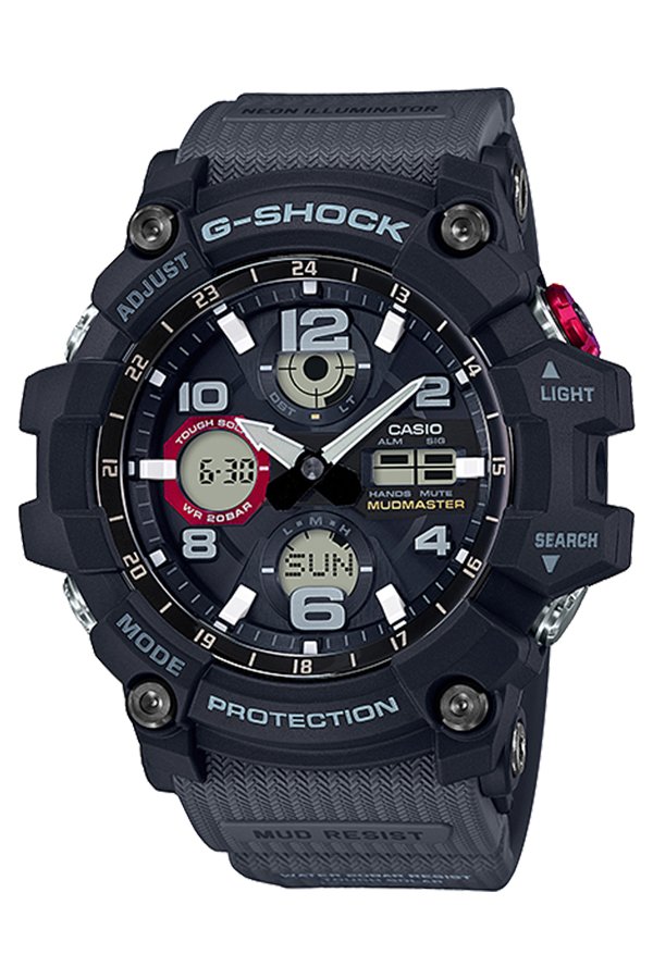 MASTER OF G Series MUDMASTER เป็นนาฬิกาที่ออกแบบและประดิษฐ์ขึ้นเพื่อให้เหมาะกับผู้สวมใส่ที่ทำงานในสภาพแวดล้อมที่มีเศษหิน ดิน และซากปรักหักพัง เราภูมิใจนำเสนอรุ่นใหม่ในซีรีส์นี้ที่มีการทำงานด้วยพลังงานแสงอาทิตย์ มีรูปทรงที่สามารถป้องกันไม่ให้ดินและโคลนเข้าตัวเรือนได้ โครงสร้างป้องกันปุ่มรูปทรงกระบอกของรุ่นนี้ช่วยป้องกันโคลนและฝุ่น ทนทานต่อสภาพแวดล้อมที่ทรหด ปุ่มป้องกันแบบท่อทรงกระบอกช่วยป้องกันแรงกระแทกและเพิ่มประสิทธิภาพการทำงาน พร้อมปะเก็นภายในปุ่มที่ป้องกันไม่ให้ทรายและฝุ่นเล็กๆ เข้าตัวเรือน ดีไซน์ทนทานของนาฬิการุ่นนี้สะท้อนภาพลักษณ์ของยานพาหนะชนิดพิเศษและเครื่องมือหน่วยบรรเทาสาธารณภัยที่แข็งแรงทนทาน