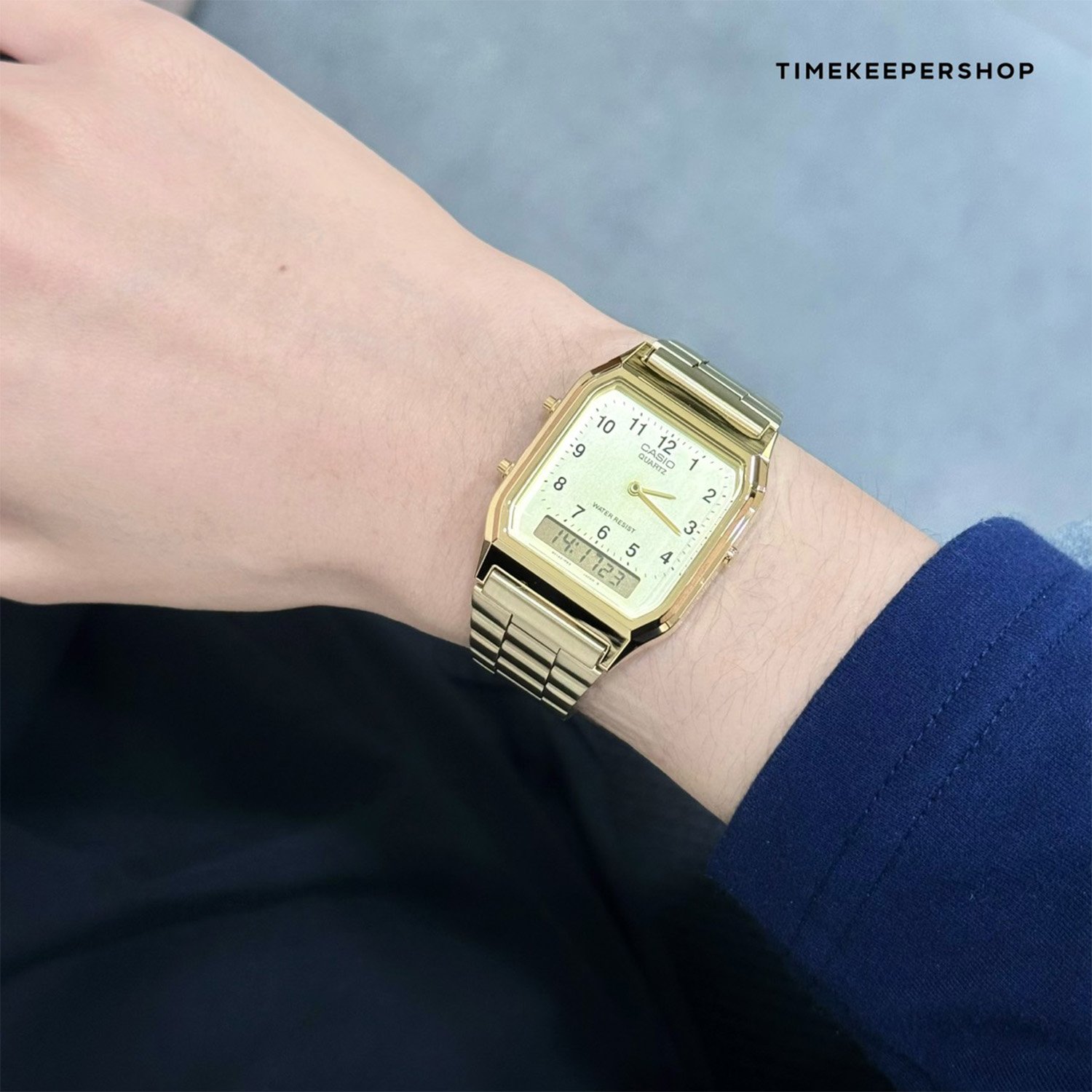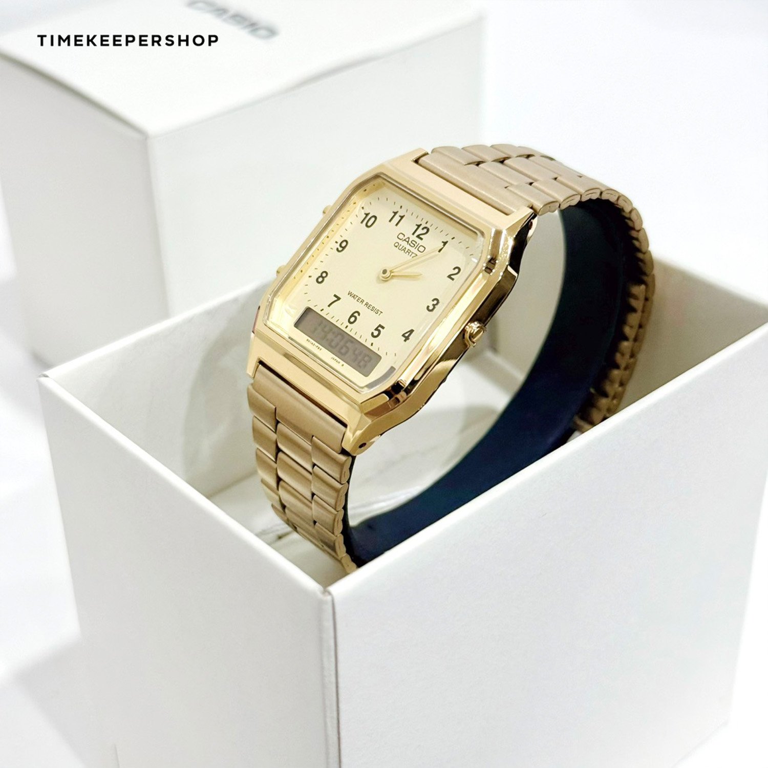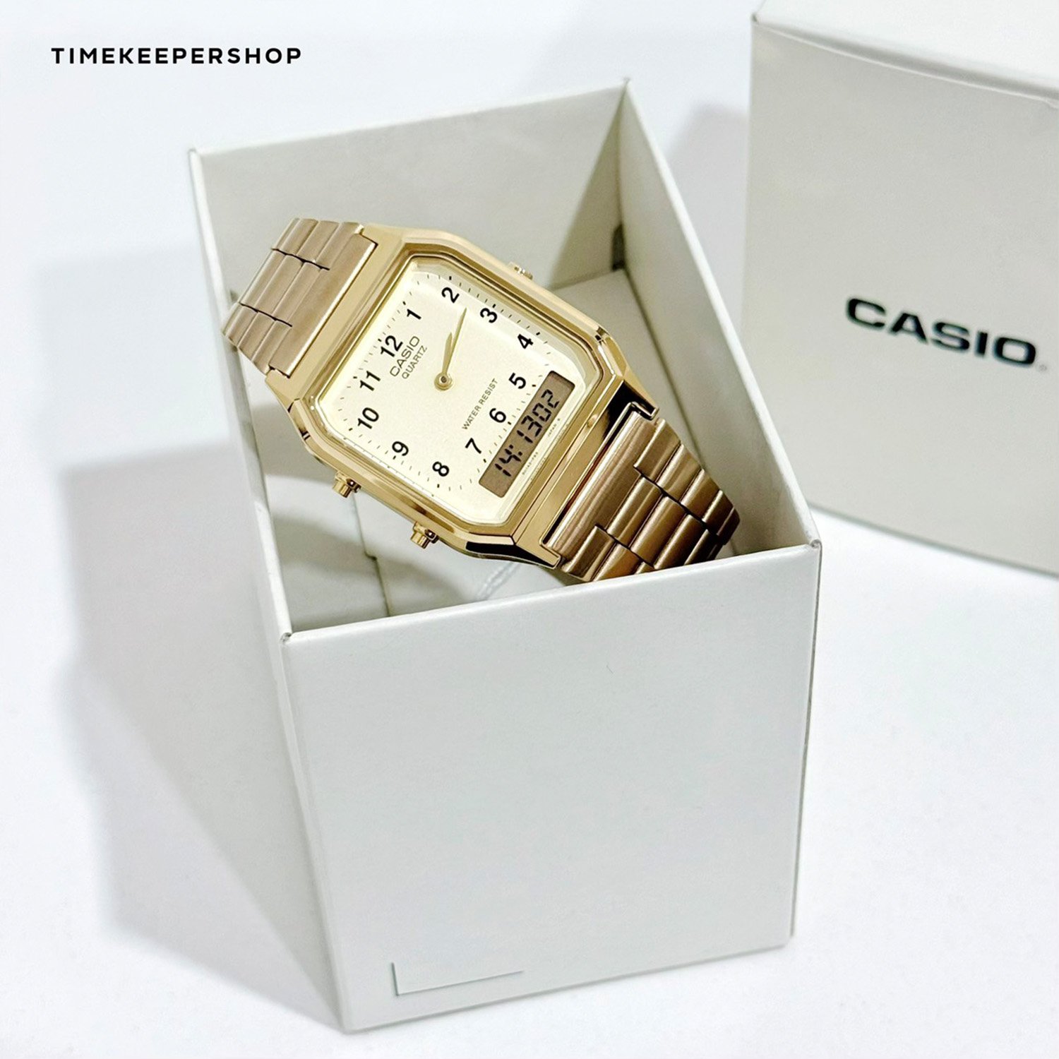Casio Standard นาฬิกาข้อมือผู้ชาย สายสเตนเลสสตีล รุ่น AQ-230GA-9B - สีทอง
