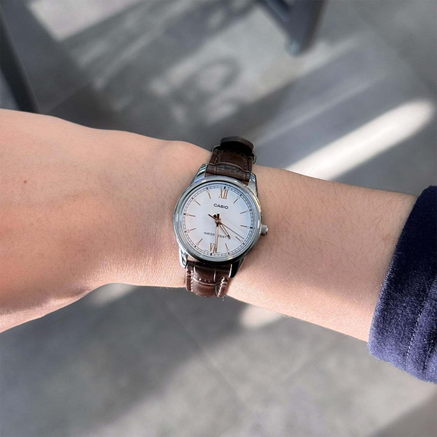 Casio Standard นาฬิกาข้อมือผู้หญิง สายหนังแท้ รุ่น LTP-V005L-7B3 - สีเงิน