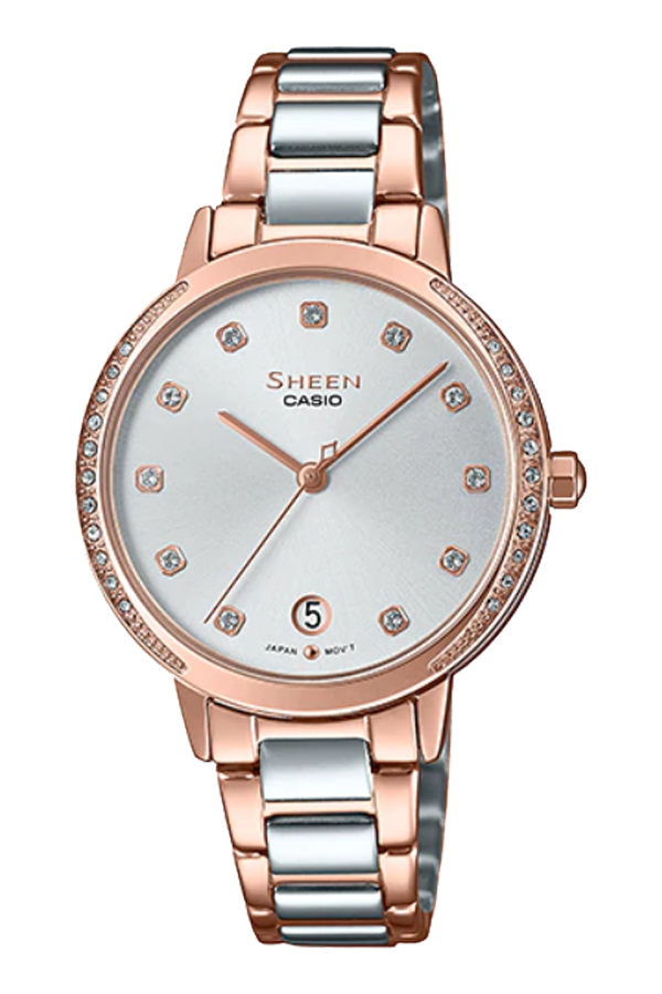 Casio Sheen นาฬิกาข้อมือผู้หญิง สายสเตนเลส รุ่น SHE-4056SPG-7A - สีพิงค์โกลด์สลีบสีเงิน