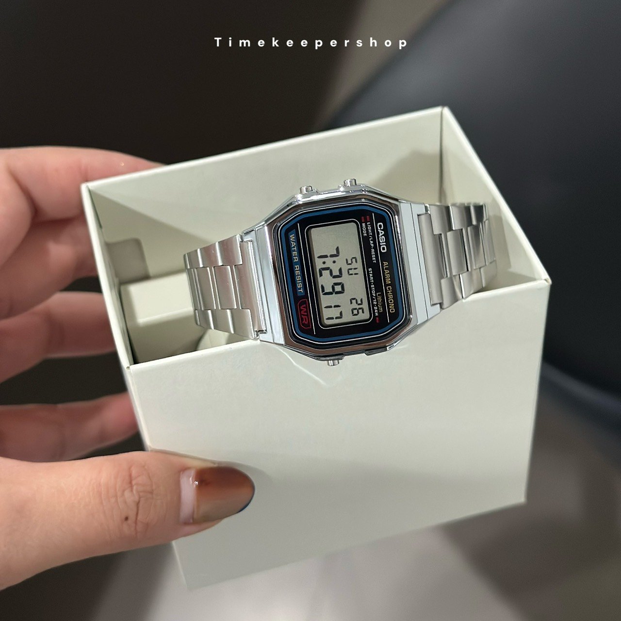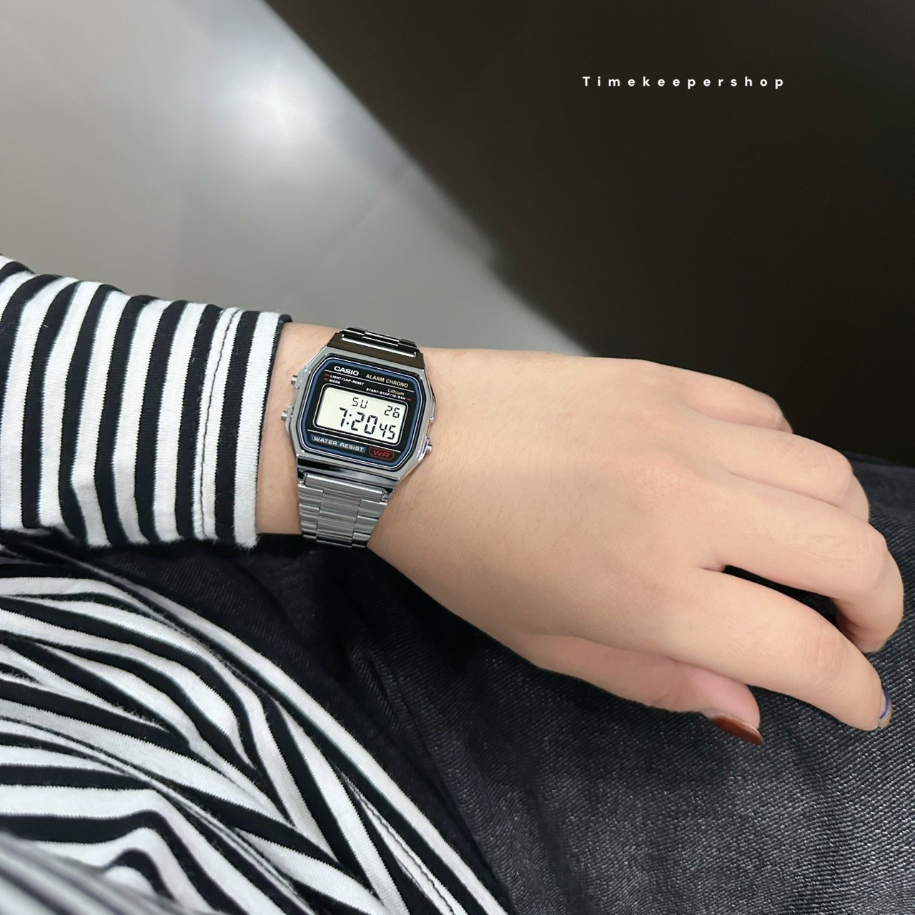 Casio Standard นาฬิกาข้อมือผู้ชาย สายสแตนเลส รุ่น A158WA-1 - สีเงิน