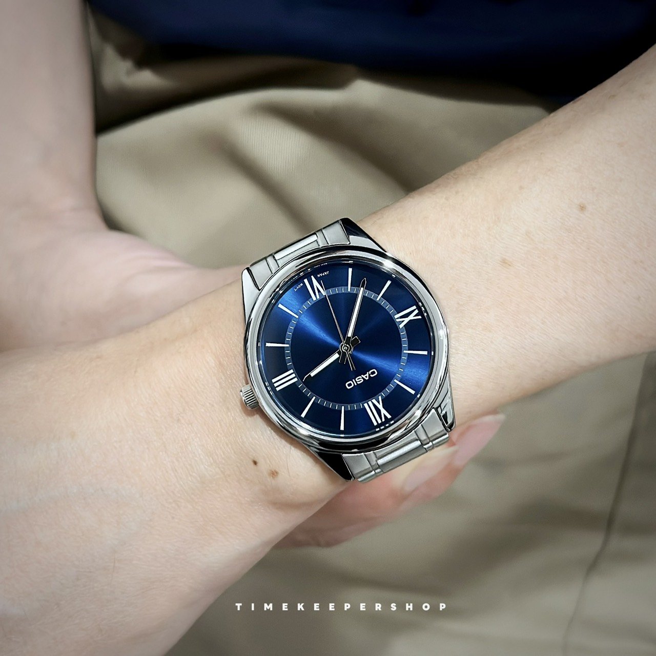 Casio Standard นาฬิกาข้อมือผู้ชาย สายสแตนเลส รุ่น MTP-V005D-2B5 - สีเงิน