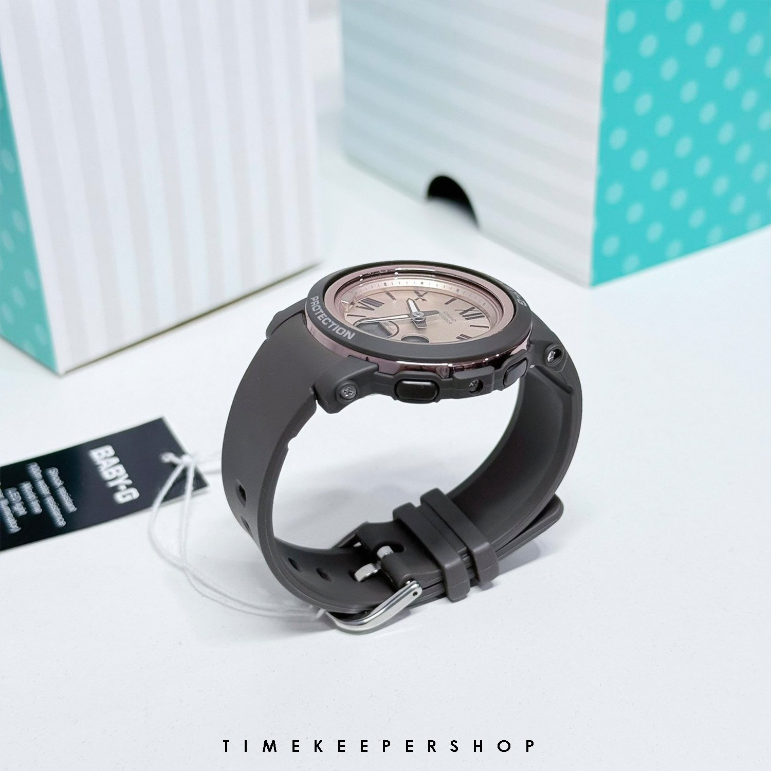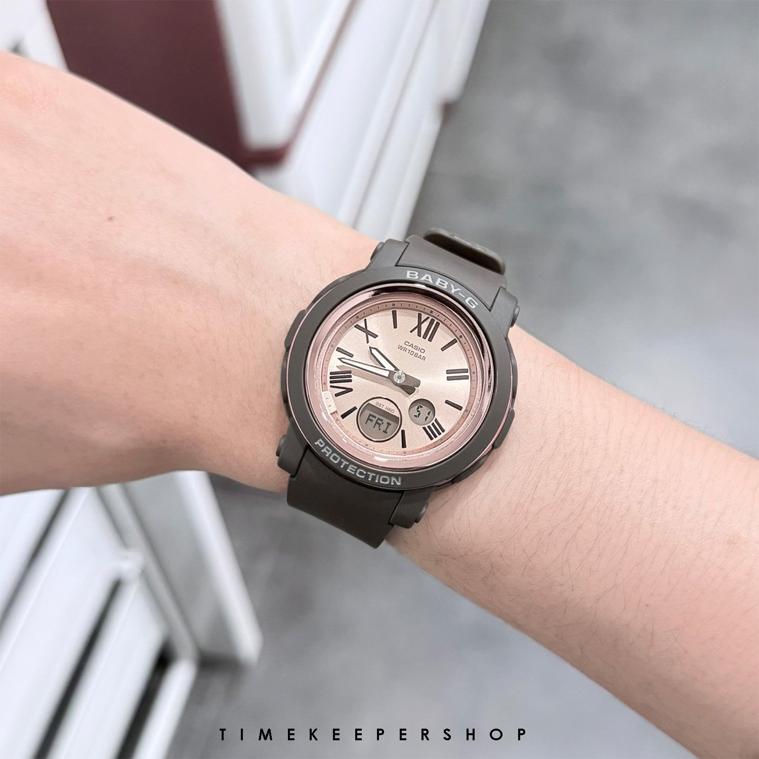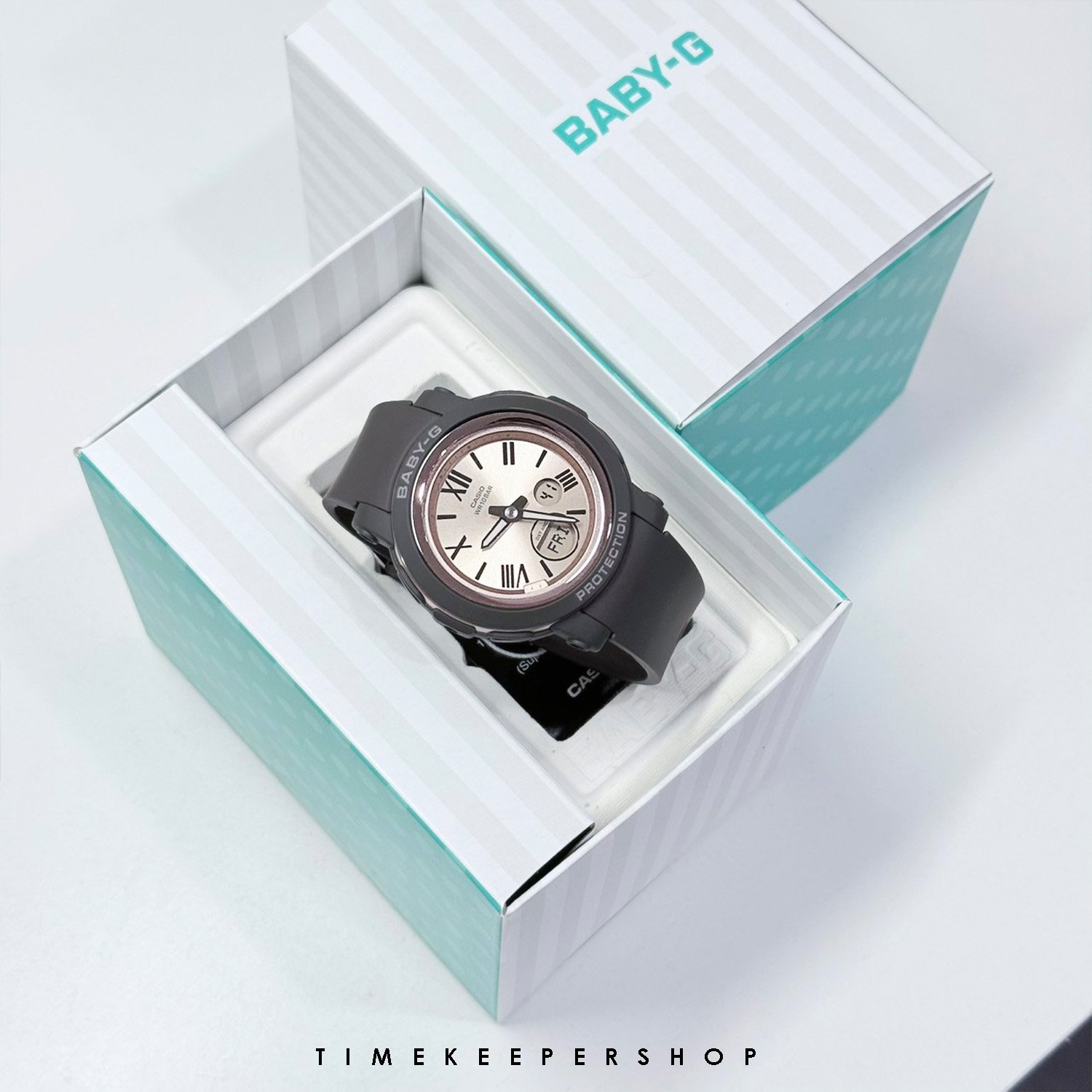 BABY-G เรือนนี้มีความทนทานที่คุณคาดหวังจากดีไซน์บางเฉียบน้ำหนักเบา และตัวเรือนทรงกลมเรียบๆ ตลอดจนหน้าปัดกว้างเพื่อใช้บอกเวลาได้ง่าย มีตัวบอกเวลาแบบเลขโรมันที่ดูหรูหราและผิวสีพิงค์โกลด์ที่ผ่านการตกเคลือบด้วยไอในเข็มนาฬิกา ตัวบอกเวลา และแหวนของกรอบเพื่อผิวโลหะที่ขัดเรียบเงางาม