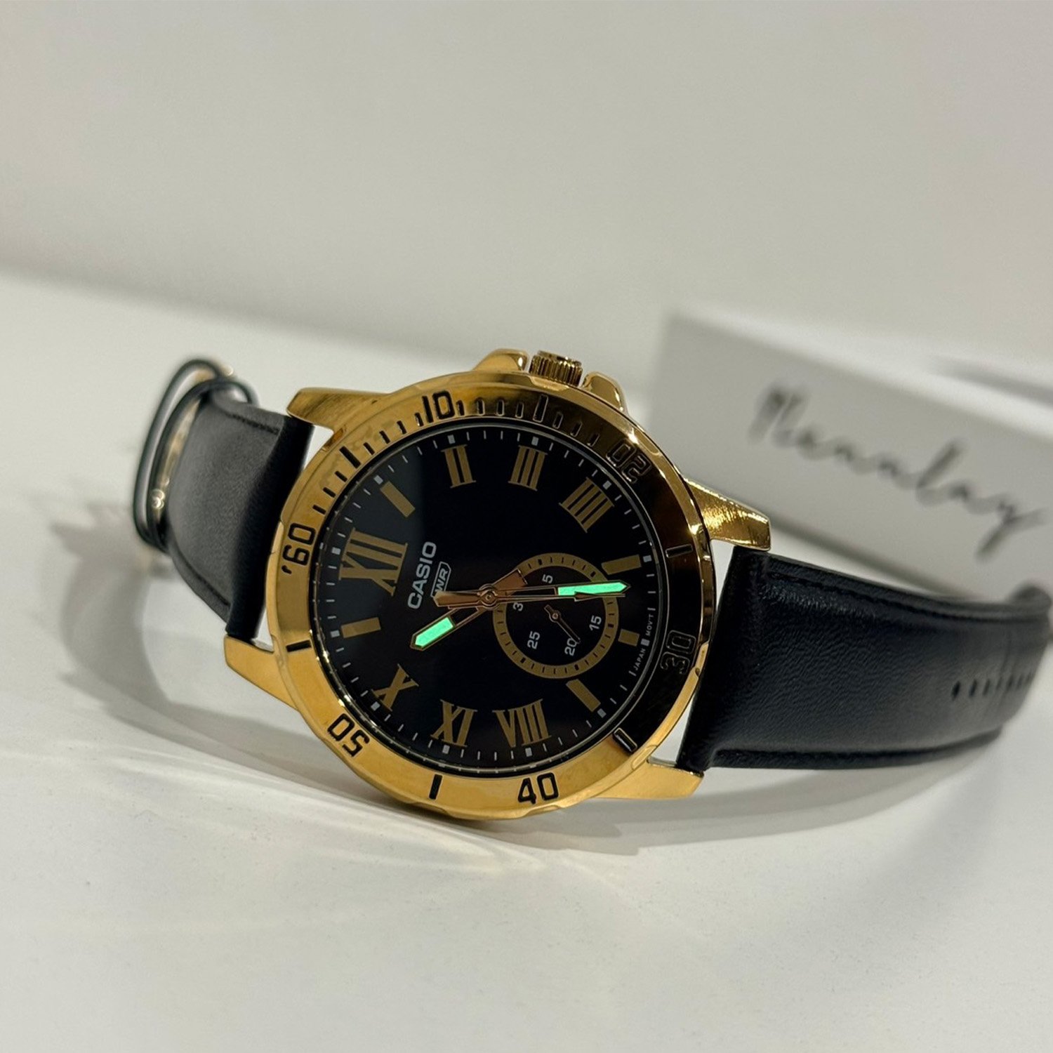 Casio Standard นาฬิกาข้อมือผู้ชาย สายหนังแท้ รุ่น MTP-VD200GL-1B - สีดำ
