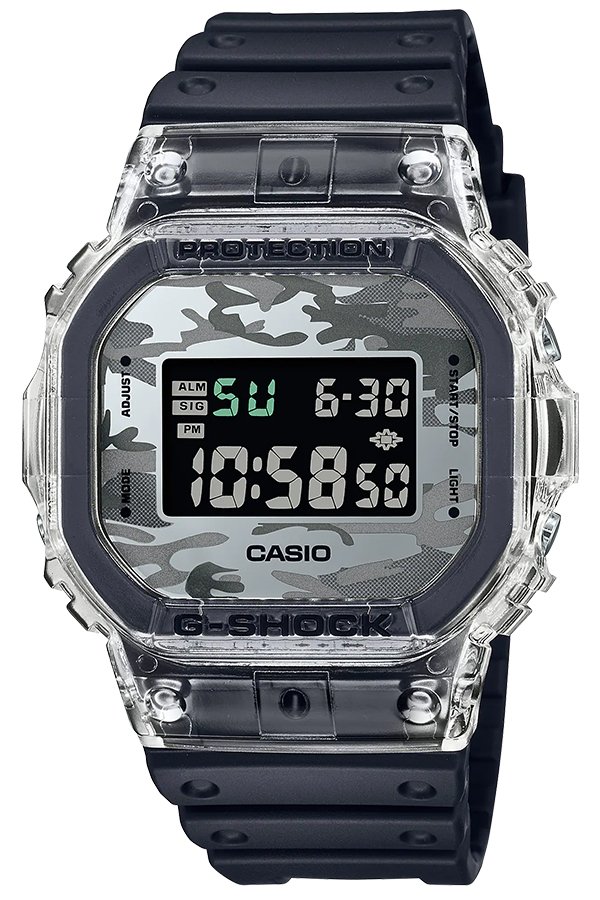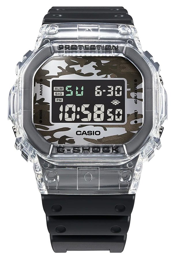 พรางตัวด้วย G-SHOCK ที่มีหน้าปัดลายพรางและกรอบโปร่งแสง กรอบโปร่งแสงยอดนิยมและดีไซน์ลายพรางดั้งเดิมของเราผสานรวมกันเพื่อสไตล์ที่จะนำคุณไปได้ทุกที่ ตั้งแต่กลางแจ้งไปจนถึงถนนในเมืองอันมีสไตล์ สีดำและเทาแบบโมโนโครมอันเก๋ไก๋ขับเน้นด้วยพื้นผิวแบบโปร่งแสงเพื่อดีไซน์สุดเท่ที่เข้ากับทุกสไตล์ของคุณ