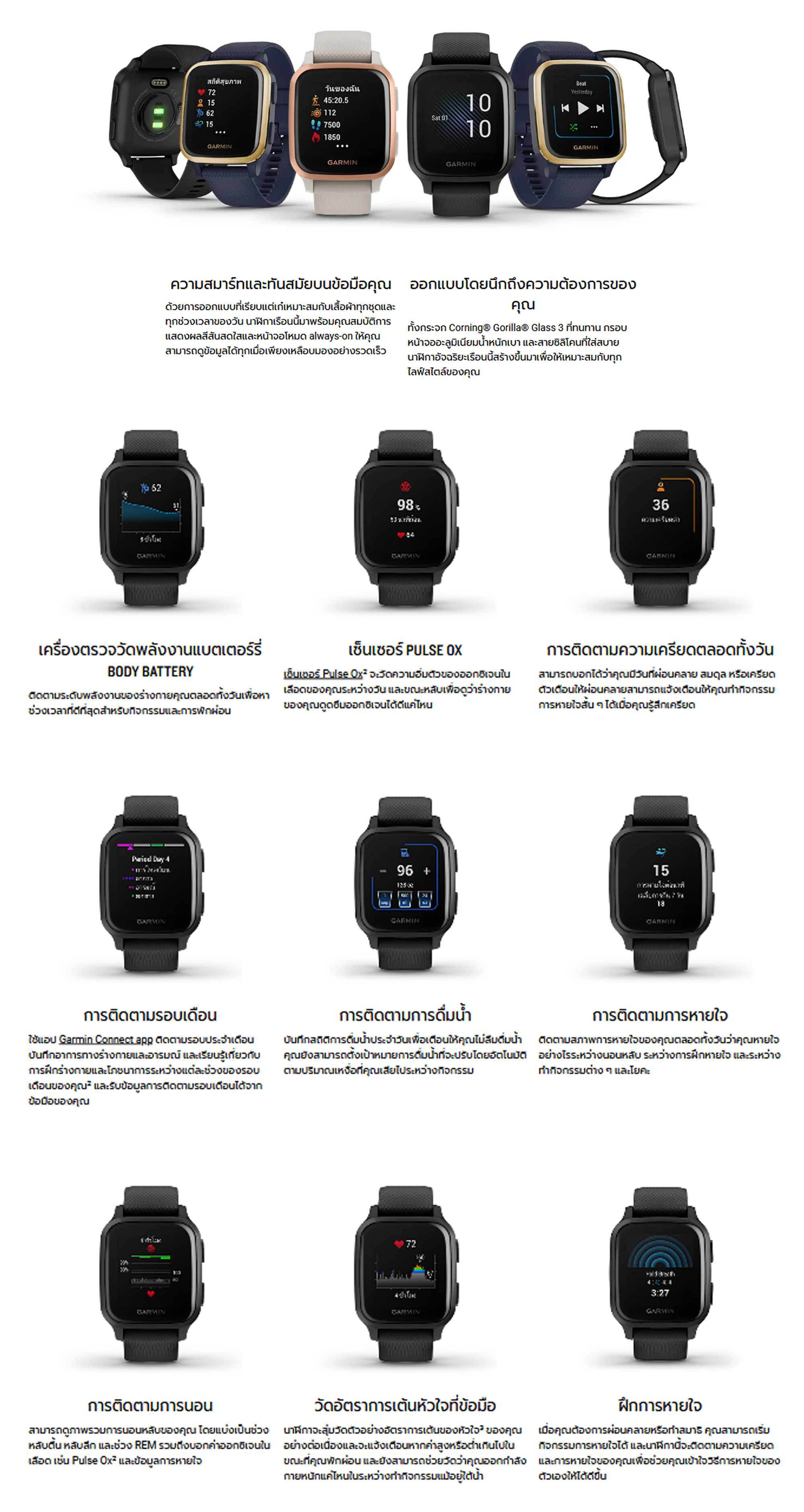 Garmin นาฬิกาข้อมือออกกำลังกาย รุ่น GARMIN VENU SQ NAVY/BLACK/MUSIC EDITION/RABBIT