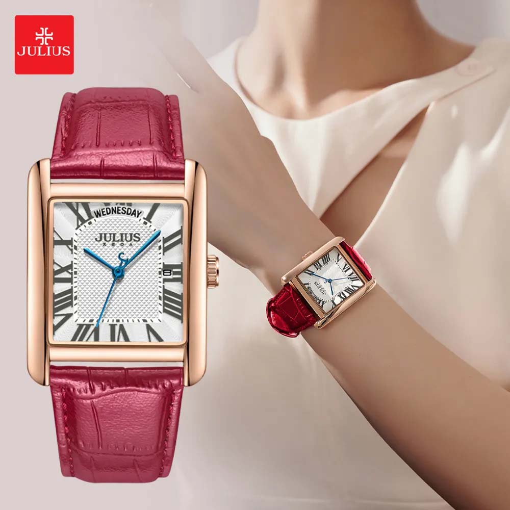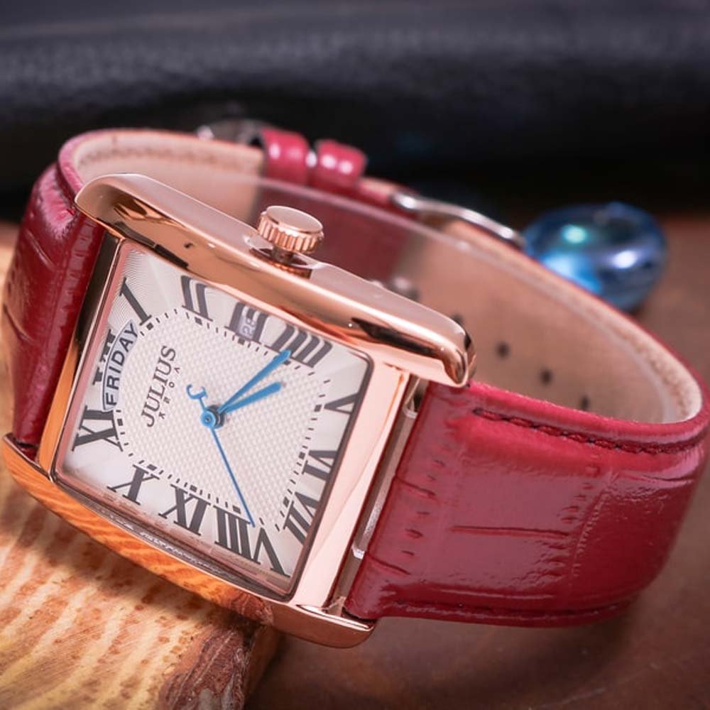 Julius นาฬิกาข้อมือผู้หญิง สายหนัง รุ่น JA-1398A - สีแดง