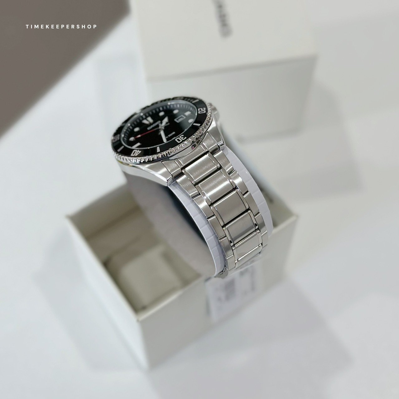 ให้คุณใช้งานนาฬิกาโลหะล้วนสไตล์อะนาล็อกกับน้ำได้ ด้วยคุณสมบัติการกันน้ำได้ลึกถึง 200 เมตร กรอบหมุนได้แบบทิศทางเดียว และด้านหลังตัวเรือนแบบสกรูยึดล็อก ทำให้นาฬิการุ่นนี้พร้อมสำหรับกีฬาทางทะเลหรือกิจกรรมทางน้ำต่างๆ ที่คุณต้องการ ดีไซน์สปอร์ตที่คงไว้ซึ่งความคลาสสิกมาพร้อมกับหน้าจอแสดงวันที่ที่ใช้งานได้สะดวก ซึ่งจะช่วยอำนวยความสะดวกให้กับคุณในสไตล์ทันสมัย