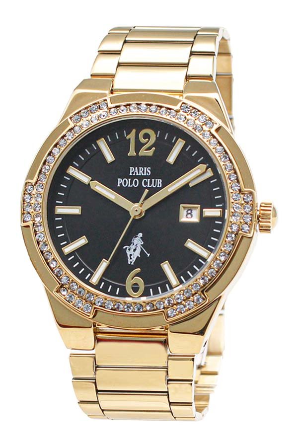 Paris Polo Club นาฬิกาข้อมือผู้หญิง สายสแตนเลส รุ่น PPC-230317-GD-BK-สีทอง
