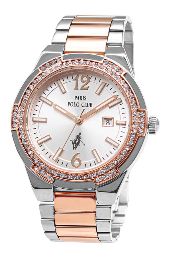 Paris Polo Club นาฬิกาข้อมือผู้หญิง สายสแตนเลส รุ่น PPC-230317-SRG-WE - สีเงิน-โรสโกลด์