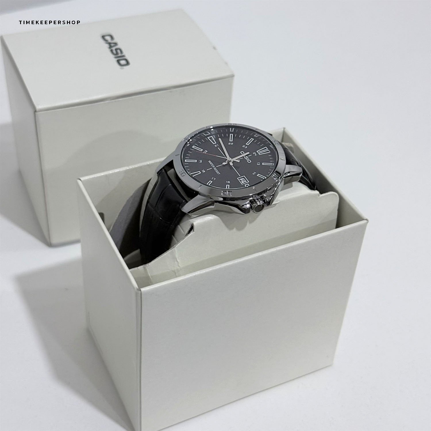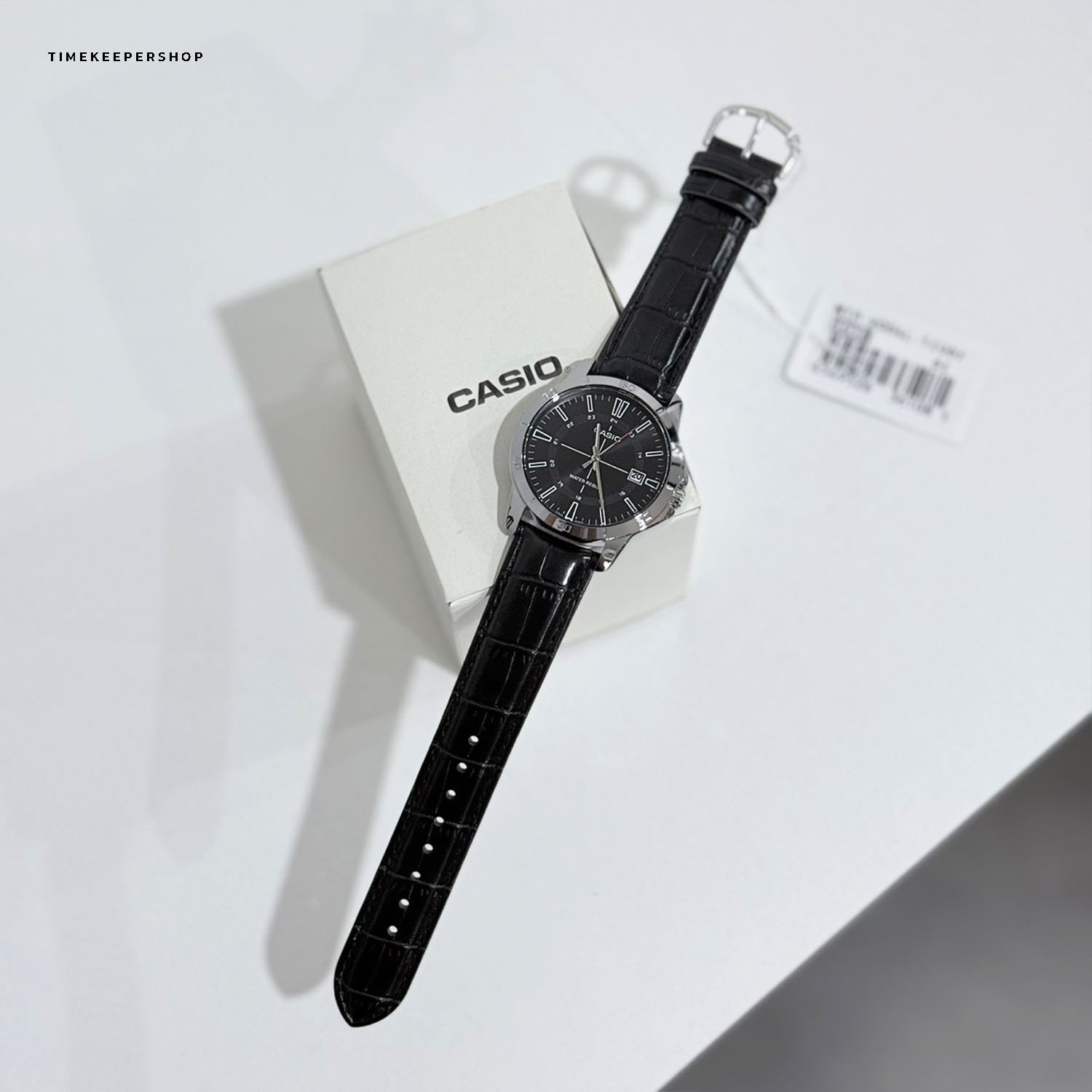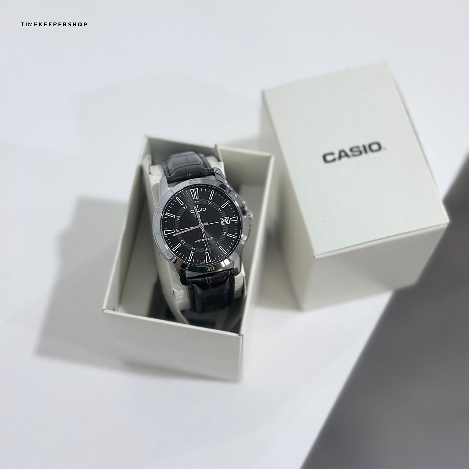 Casio Standard นาฬิกาข้อมือผู้ชาย สายหนัง รุ่น MTP-V004L-1C - สีเงิน/ดำ