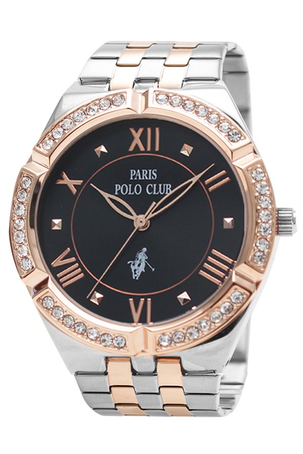 Paris Polo Club นาฬิกาข้อมือผู้หญิง สายสเตนเลส รุ่น PPC-230311-SRG-BK - สีเงิน/โรสโกลด์