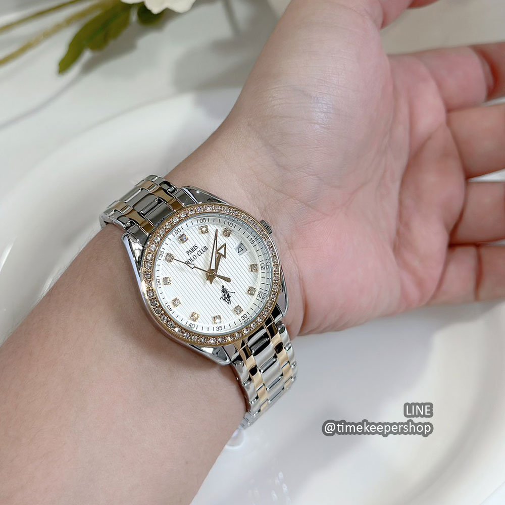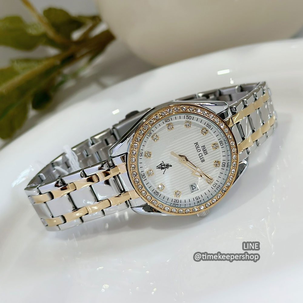 Paris Polo Club นาฬิกาข้อมือผู้หญิง สายสเตนเลส รุ่น PPC-230409-SGD-WE - สีเงิน/ทอง