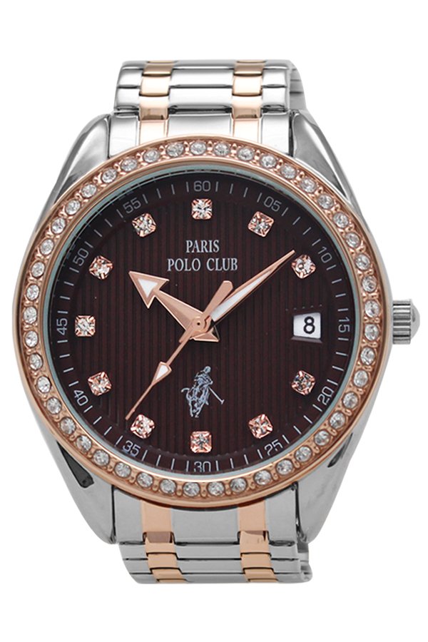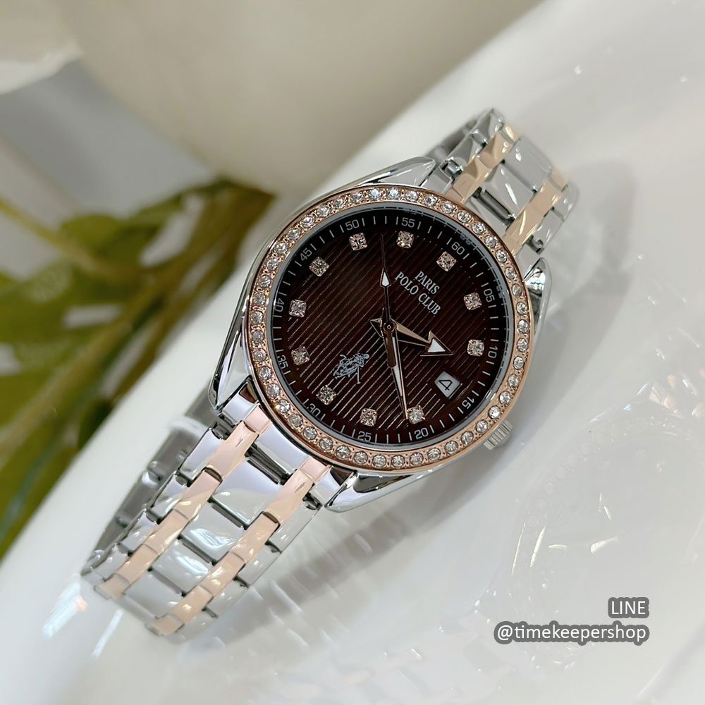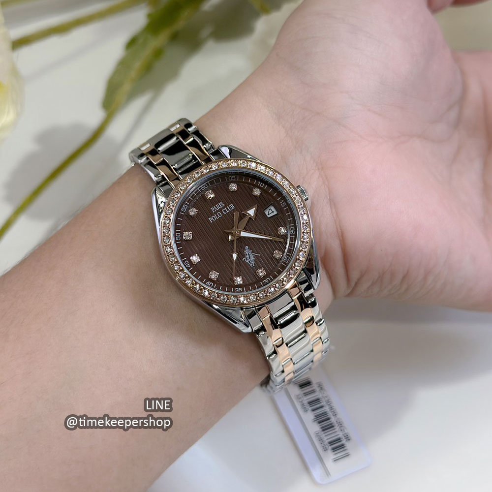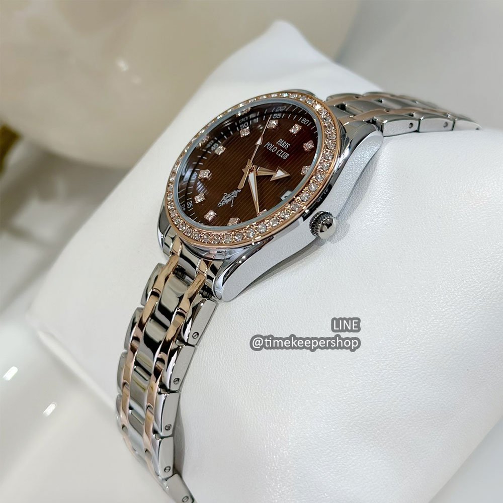Paris Polo Club นาฬิกาข้อมือผู้หญิง สายสเตนเลส รุ่น PPC-230409-SRG-BR - สีเงิน/โรสโกลด์