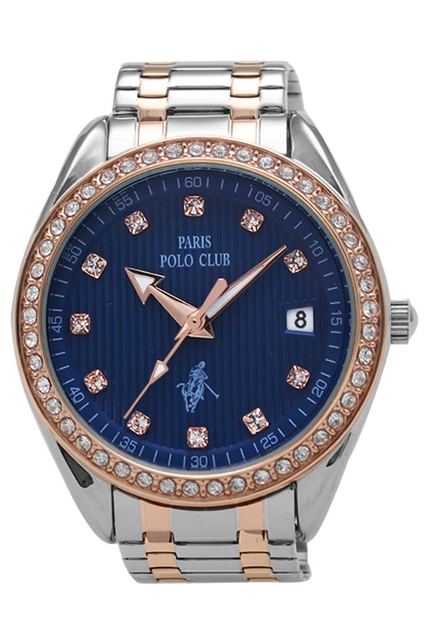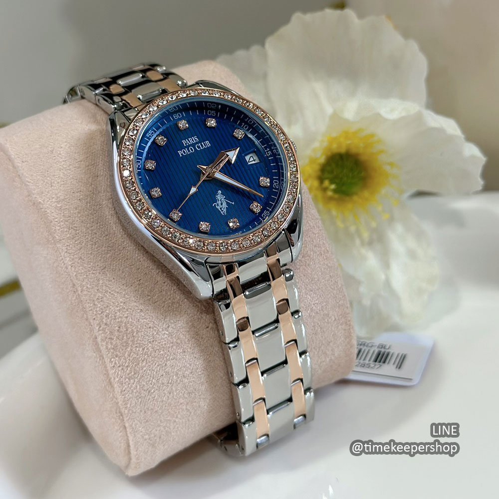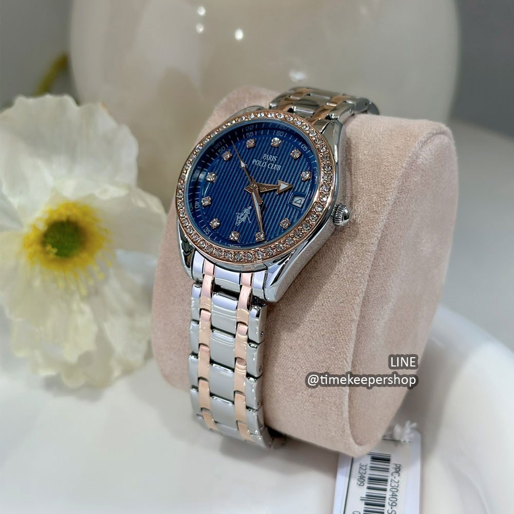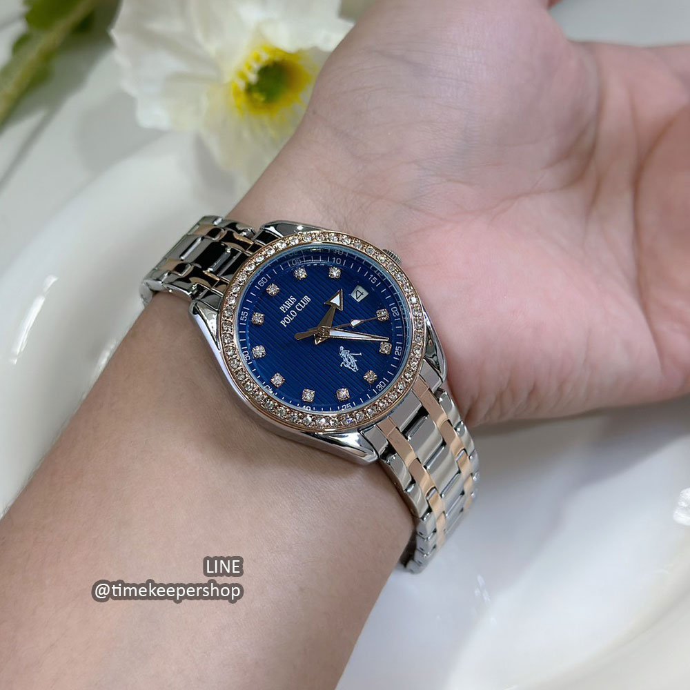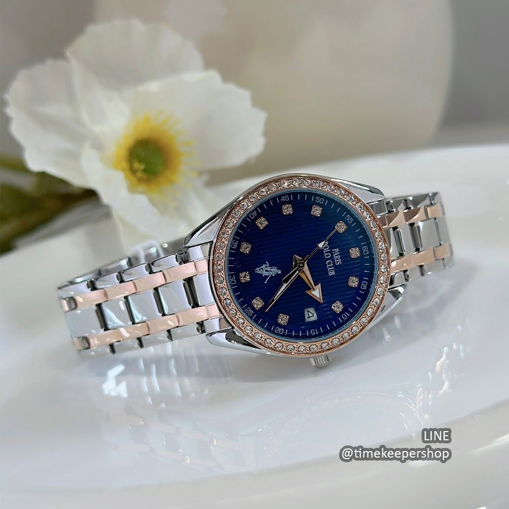 Paris Polo Club นาฬิกาข้อมือผู้หญิง สายสเตนเลส รุ่น PPC-230409-SRG-BU - สีเงิน/โรสโกลด์