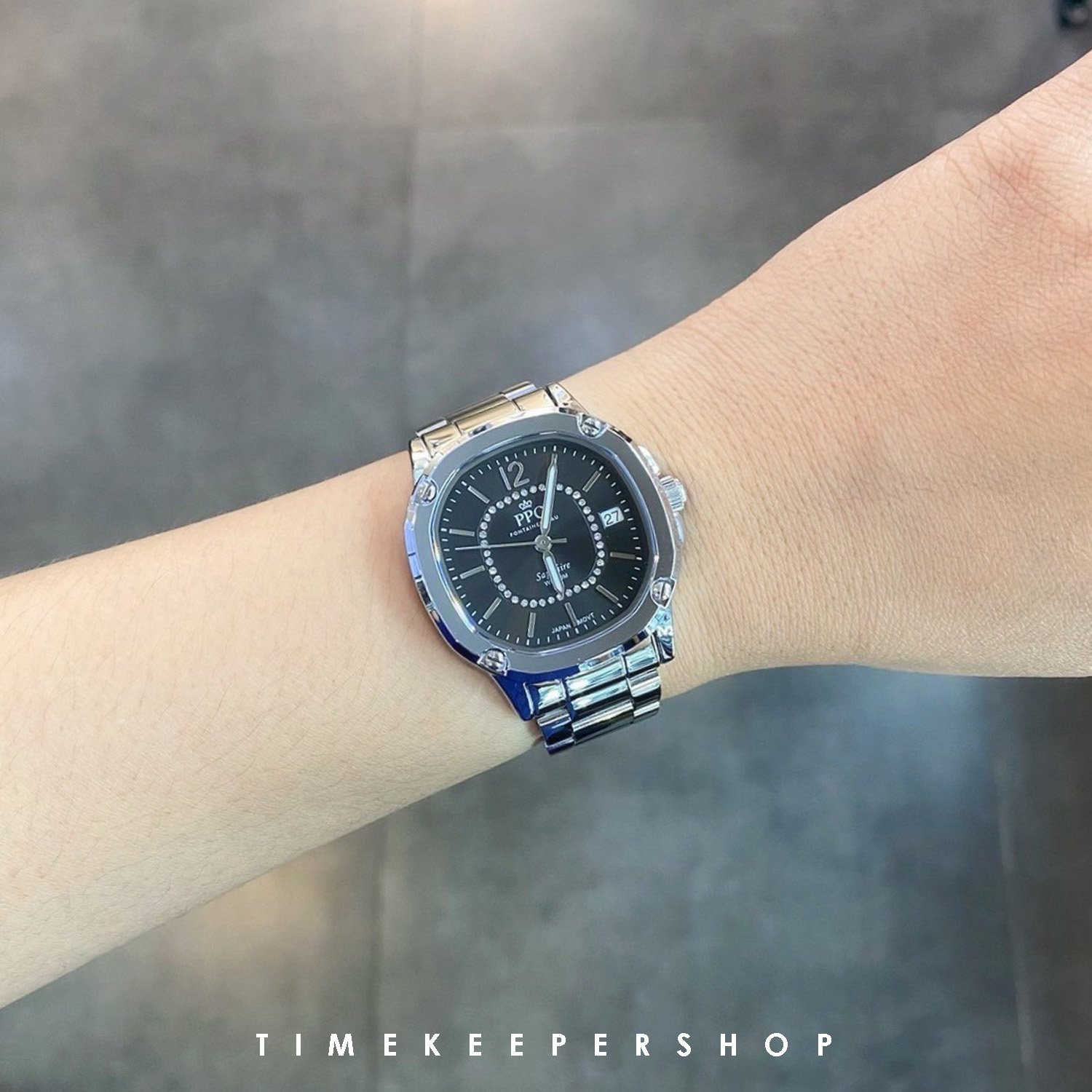 PPC FONTAINEBLEAU นาฬิกาข้อมือผู้หญิง สายสแตนเลส รุ่น PPC-EG09-BK - สีเงิน/ดำ