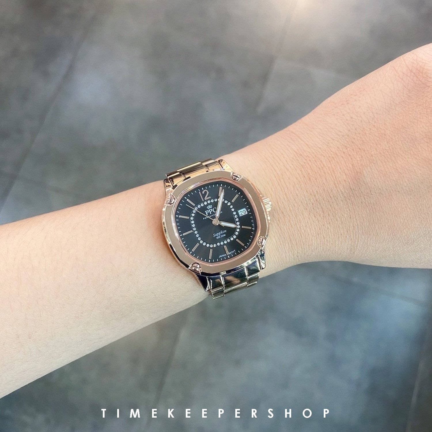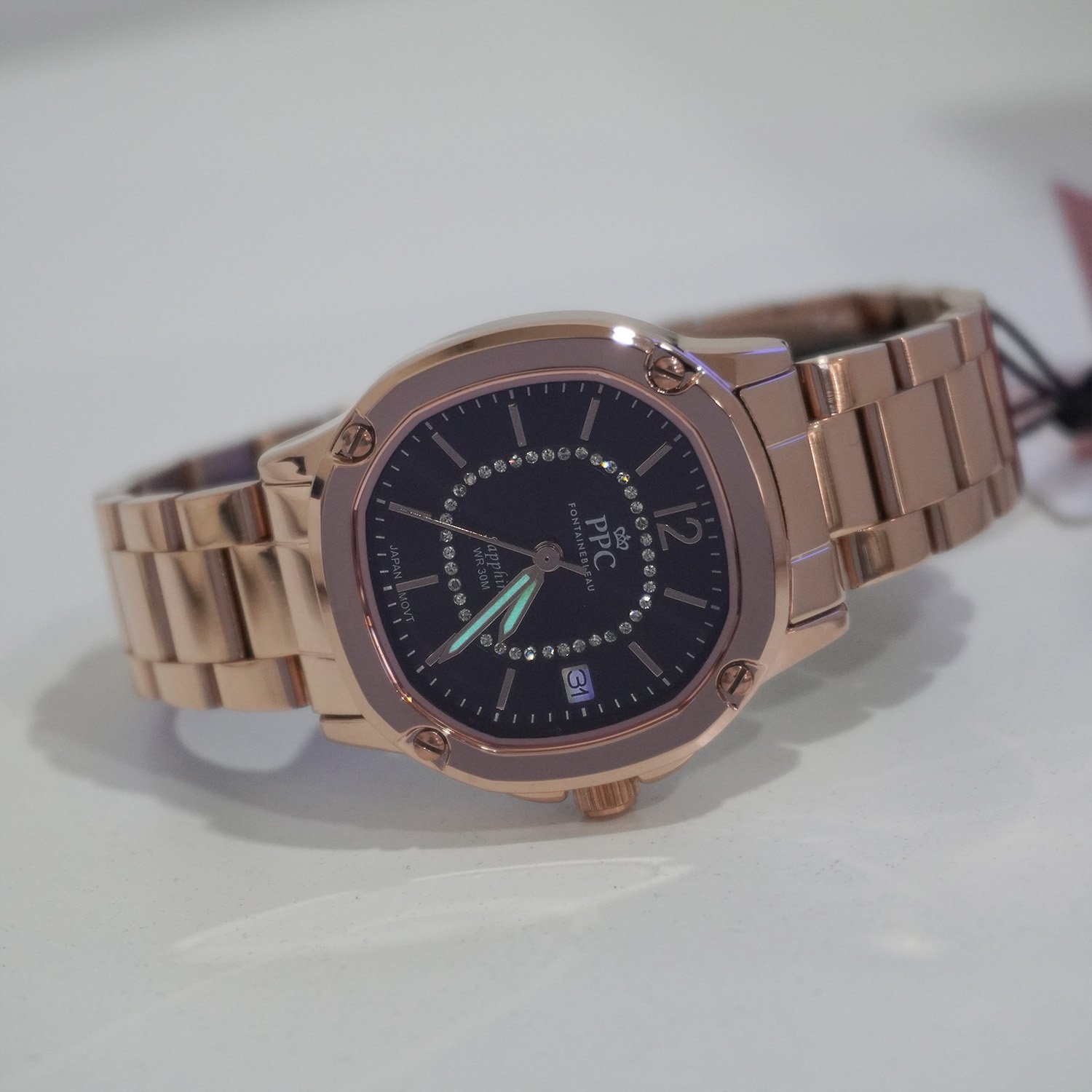 PPC FONTAINEBLEAU นาฬิกาข้อมือผู้หญิง สายสแตนเลส รุ่น PPC-EG09-RG-BK - สีโรสโกลด์/ดำ