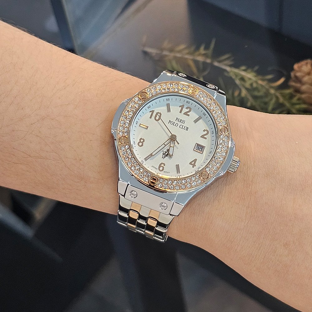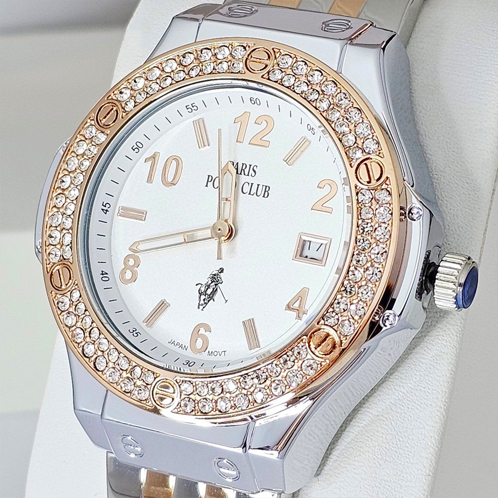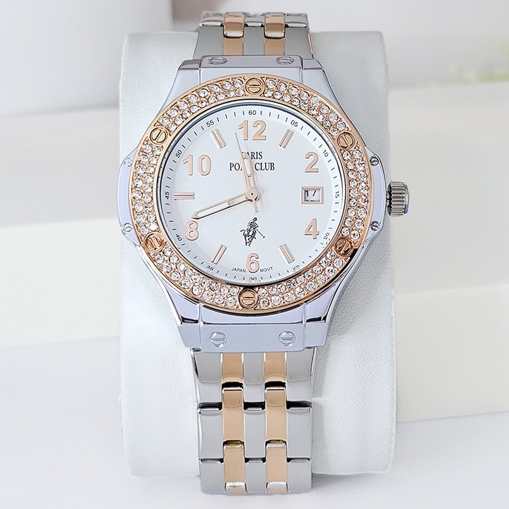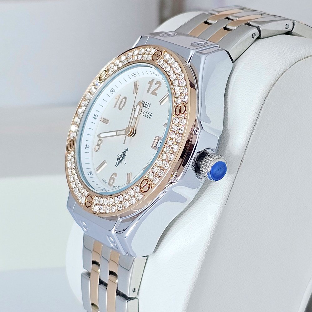 Paris Polo Club นาฬิกาข้อมือผู้หญิง สายสแตนเลส รุ่น PPC-230802-SRG-WE - สีเงิน/โรสโกลด์