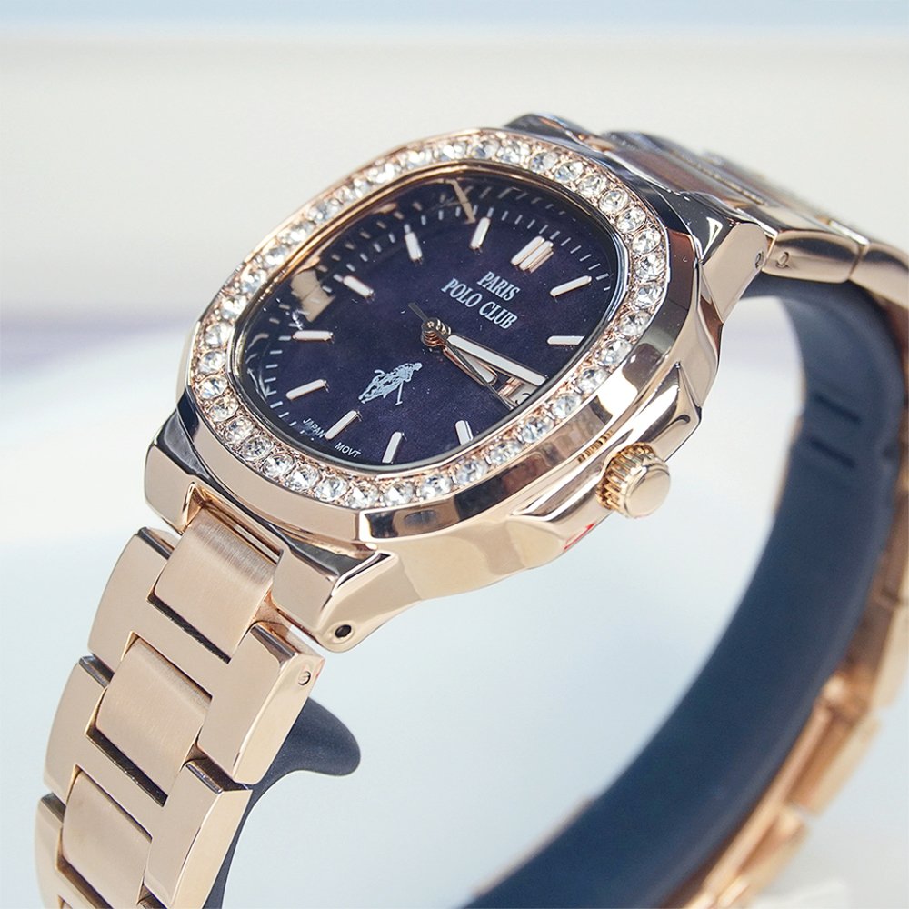 Paris Polo Club นาฬิกาข้อมือผู้หญิง สายสแตนเลส รุ่น PPC-231203-RG-BK - สีโรสโกลด์