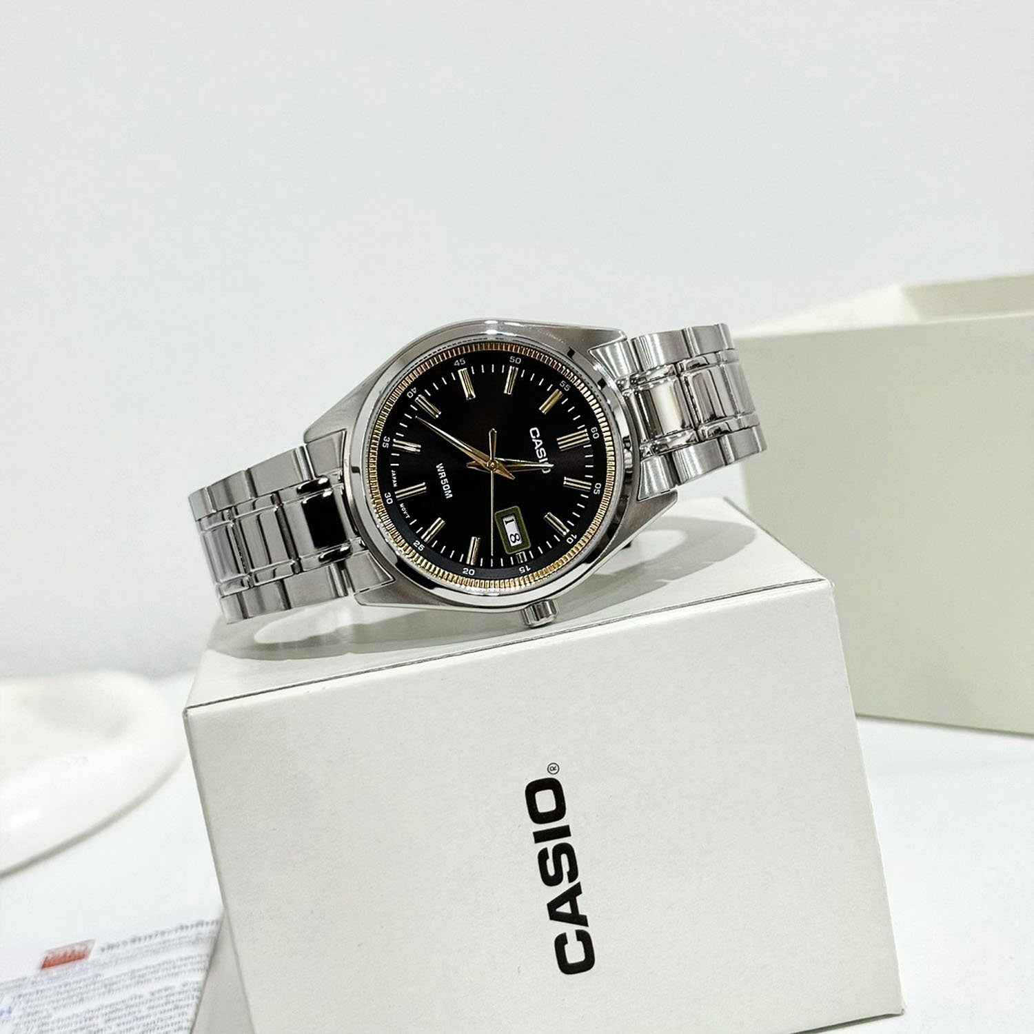 Casio Standard นาฬิกาข้อมือผู้ชาย สายสเตนเลสสตีล รุ่น MTP-B180D-1A2- สีเงิน/ดำ