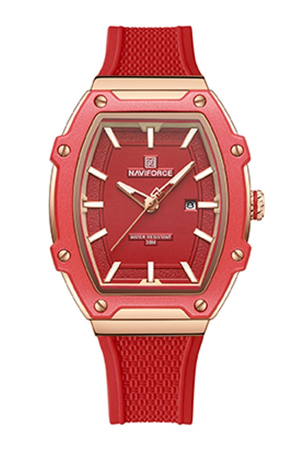 NAVIFORCE นาฬิกาข้อมือผู้หญิง สายซิลิโคน รุ่น NF8069-RG-R - สีแดง/โรสโกลด์