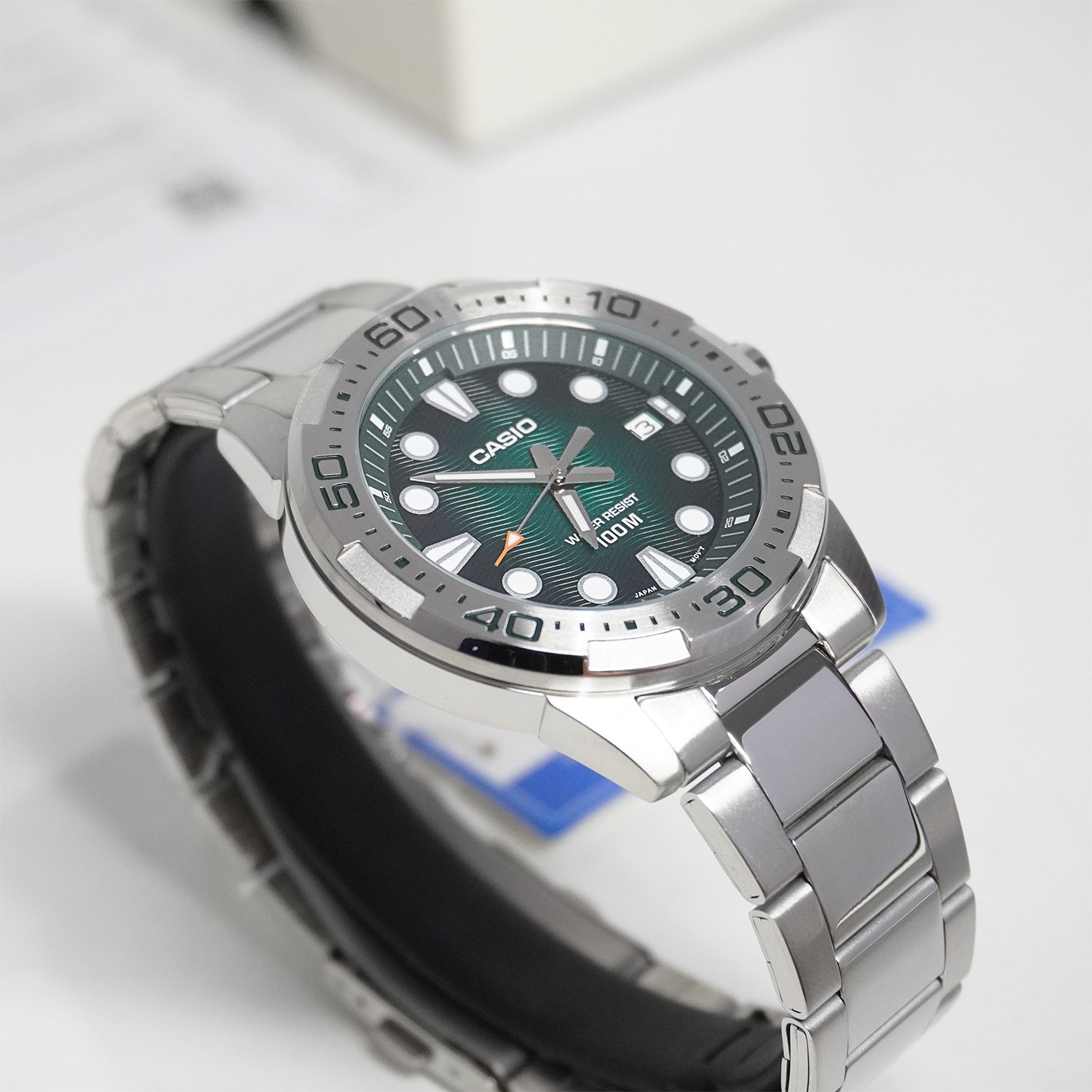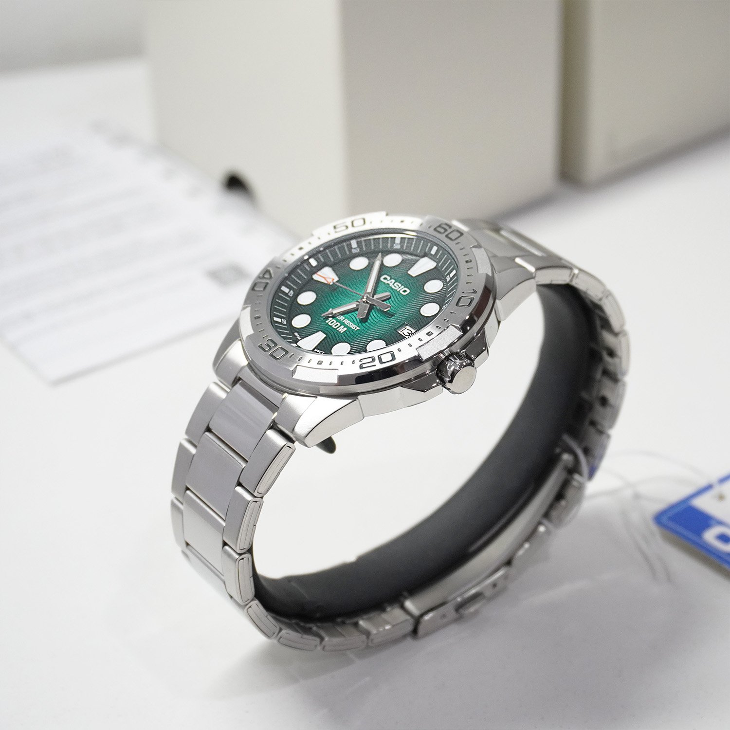 Casio Standard นาฬิกาข้อมือผู้ชาย สายแสตนเลส รุ่น MTD-140D-3A - สีเงิน/เขียว