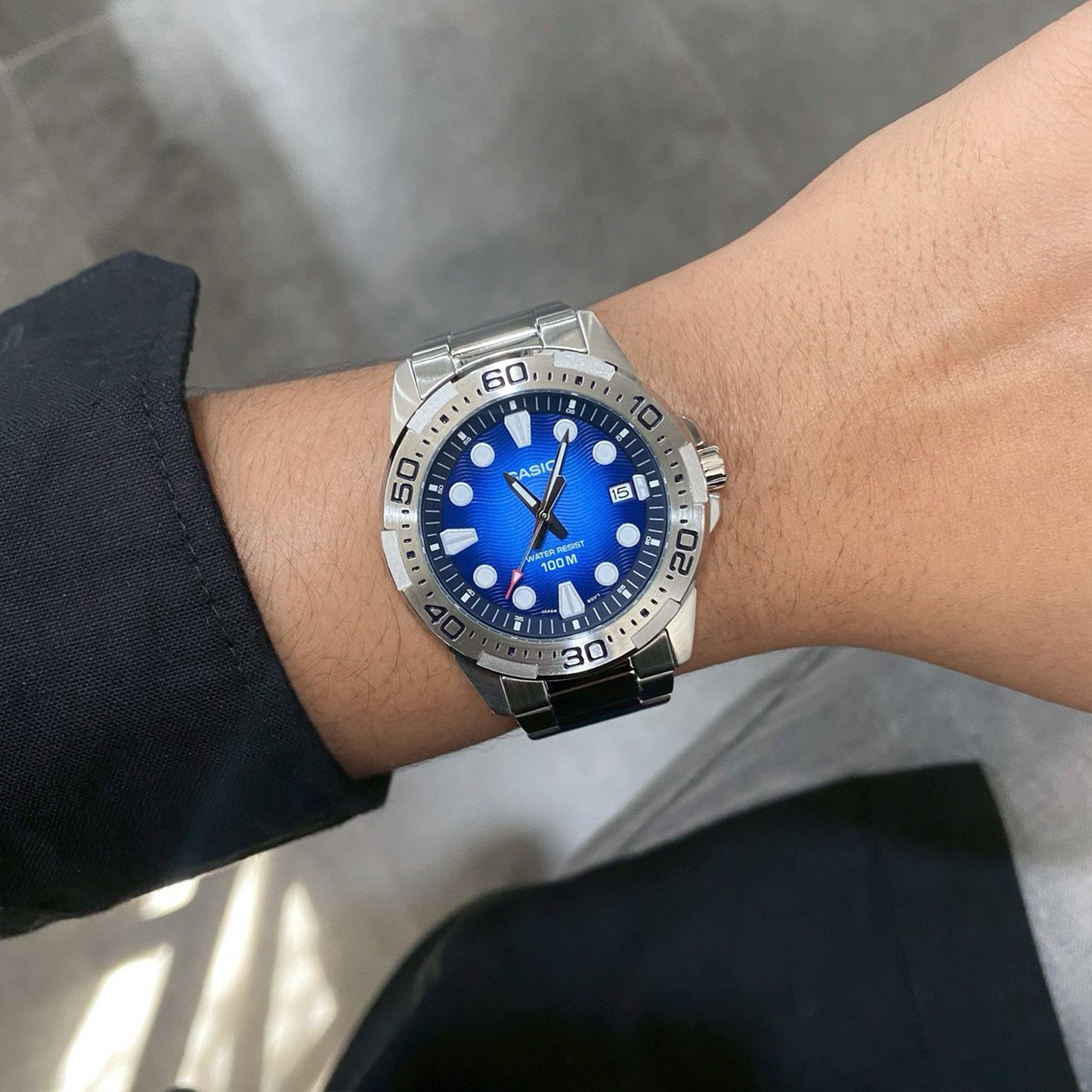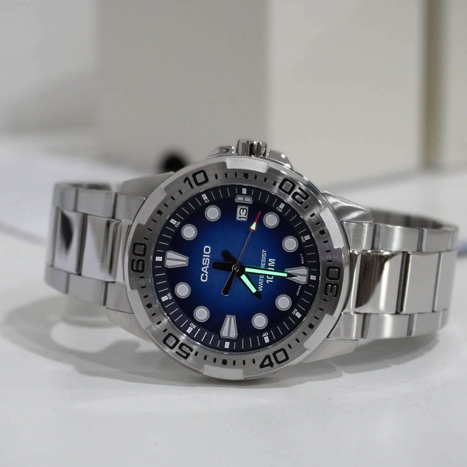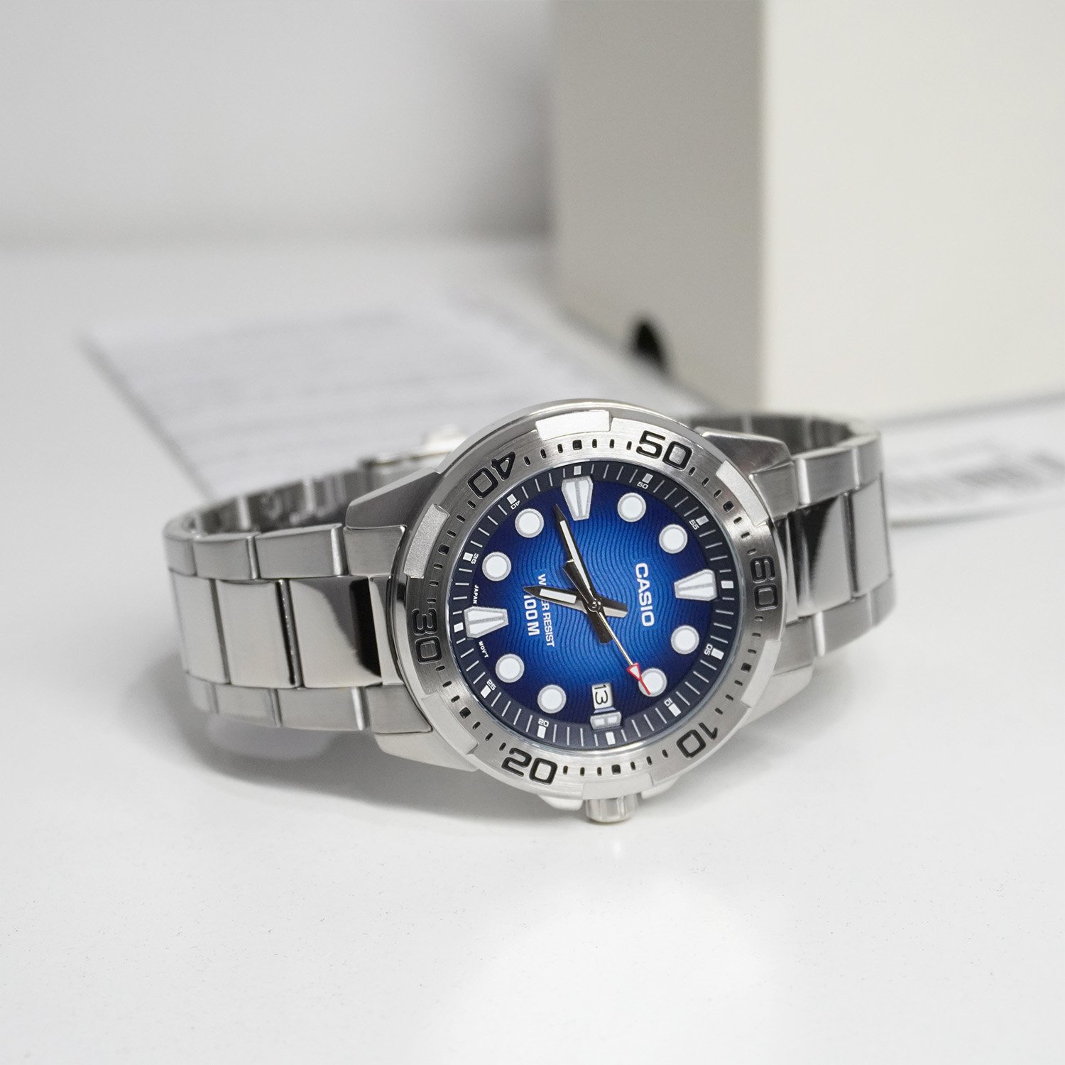 Casio Standard นาฬิกาข้อมือผู้ชาย สายแสตนเลส รุ่น MTD-140D-2A - สีเงิน/น้ำเงิน