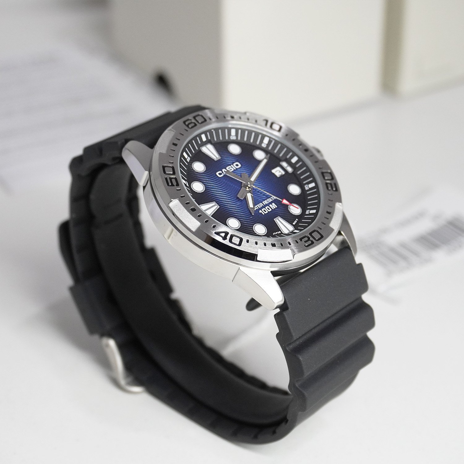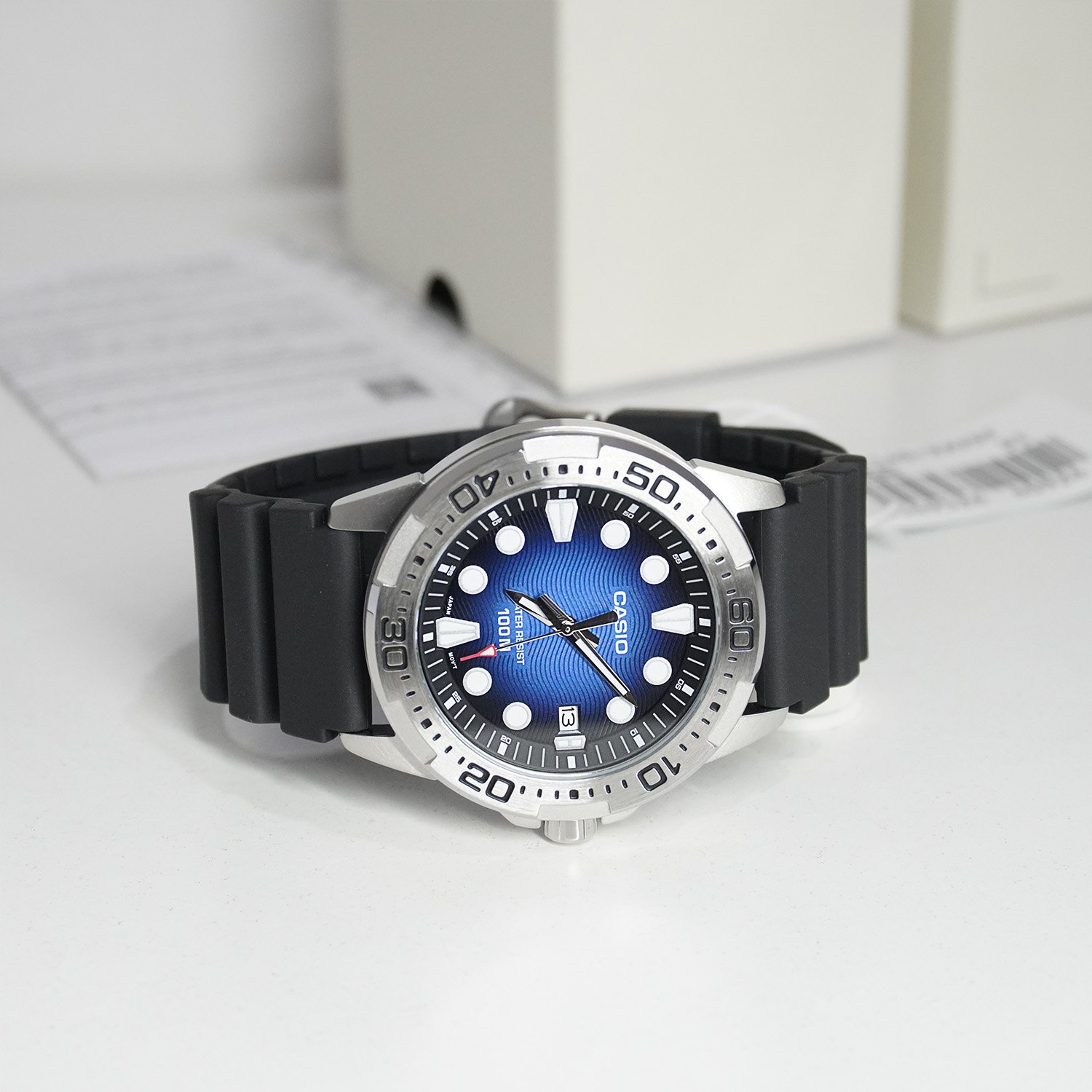 Casio Standard นาฬิกาข้อมือผู้ชาย สายเรซิน รุ่น MTD-140-2A - สีเงินน้ำเงิน/ดำ