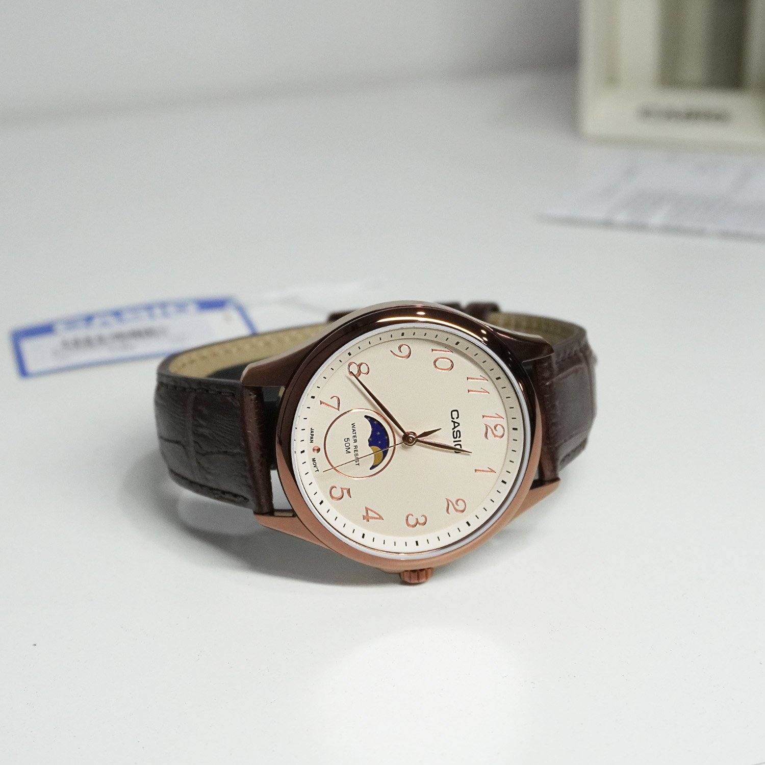 Casio Standard นาฬิกาข้อมือผู้ชาย สายหนัง รุ่น MTP-M110RL-5A - สีน้ำตาล
