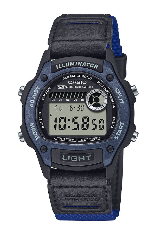 Casio Standard Digital นาฬิกาข้อมือ สายผ้า รุ่น W-220HF-2A - สีดำ/น้ำเงิน