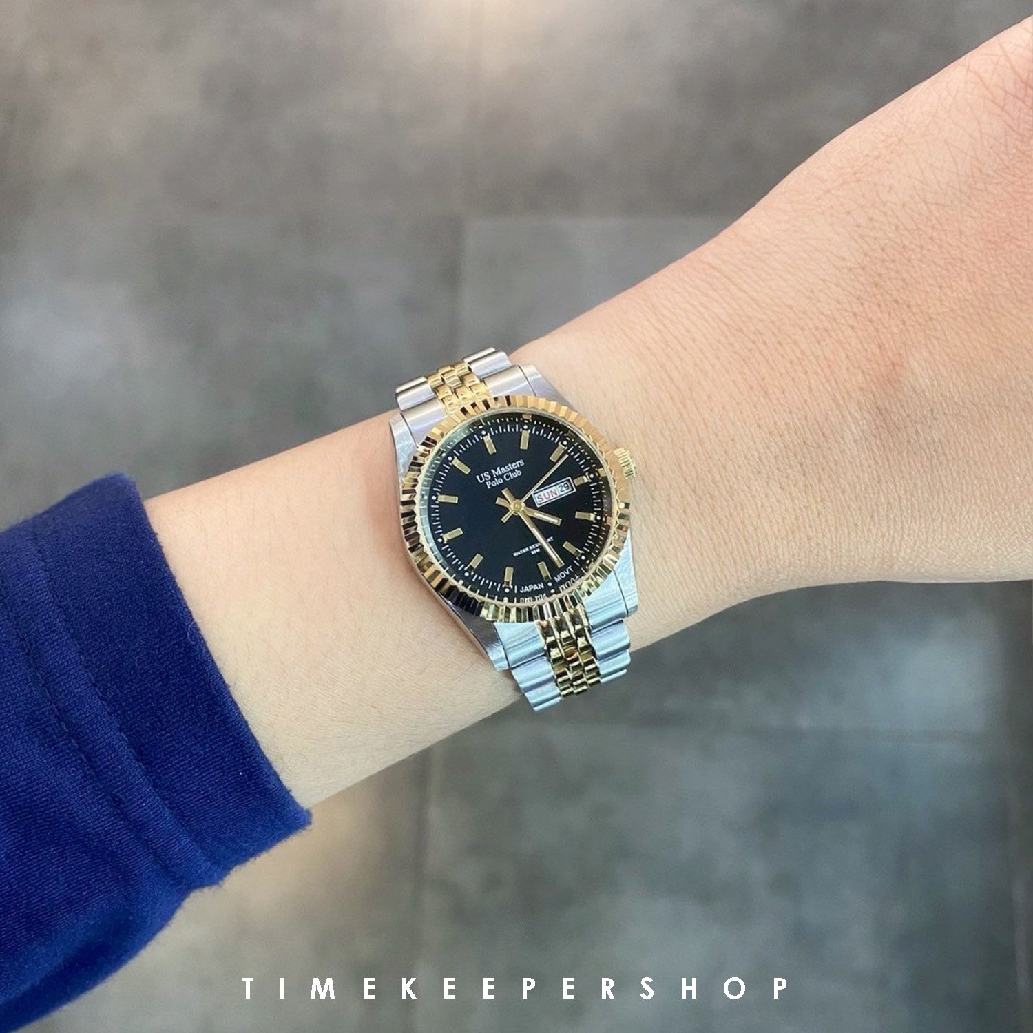 US Master Polo Club นาฬิกาข้อมือผู้หญิง สายสแตนเลส รุ่น USM-EC18-SGD-BK - สีเงิน/ทอง