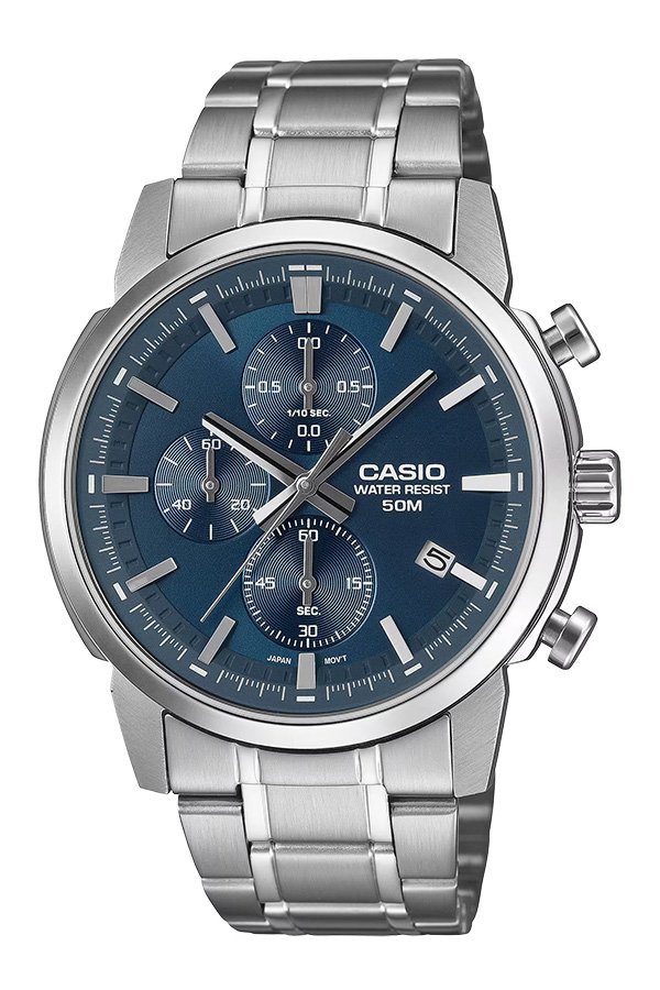 Casio Standard นาฬิกาข้อมือผู้ชาย สายสเตนเลส รุ่น MTP-E510D-2A2 - สีเงิน