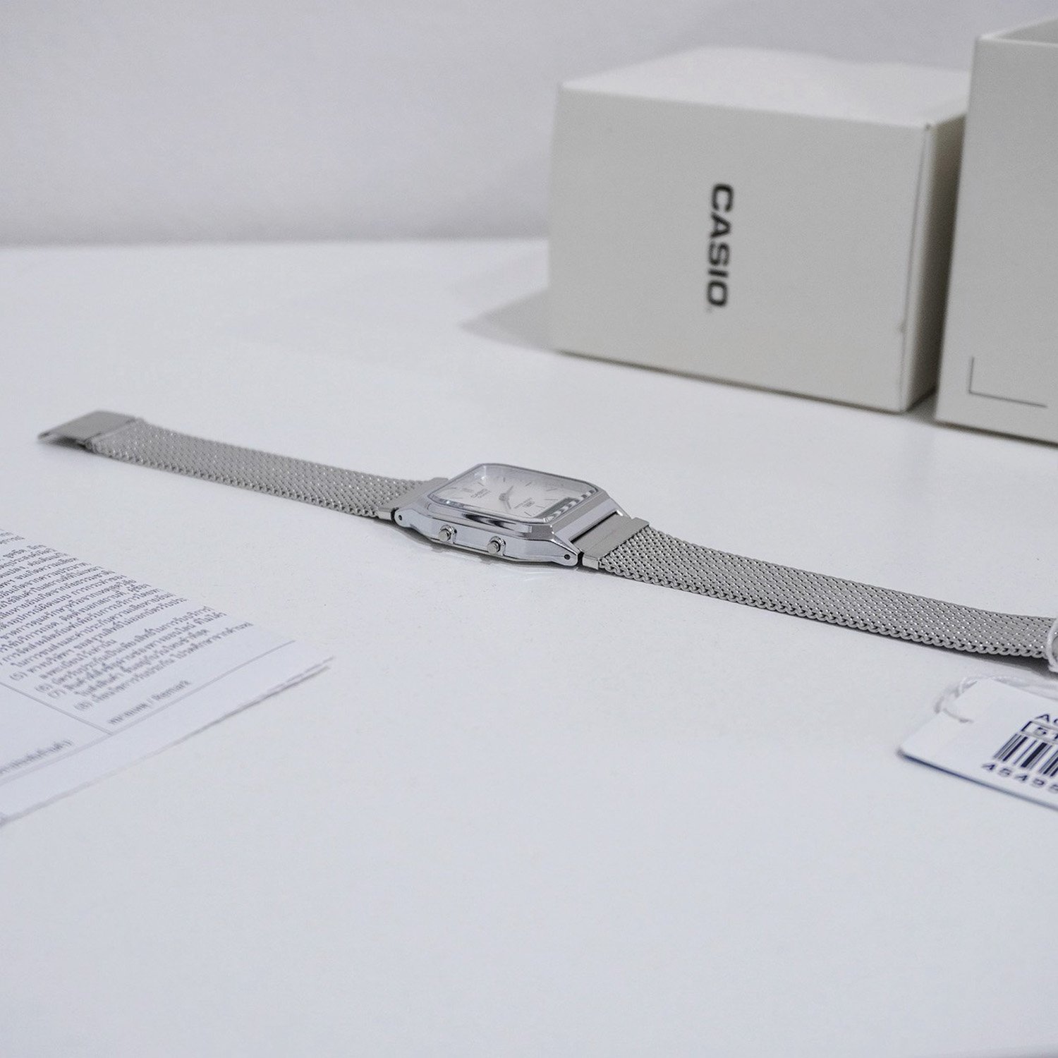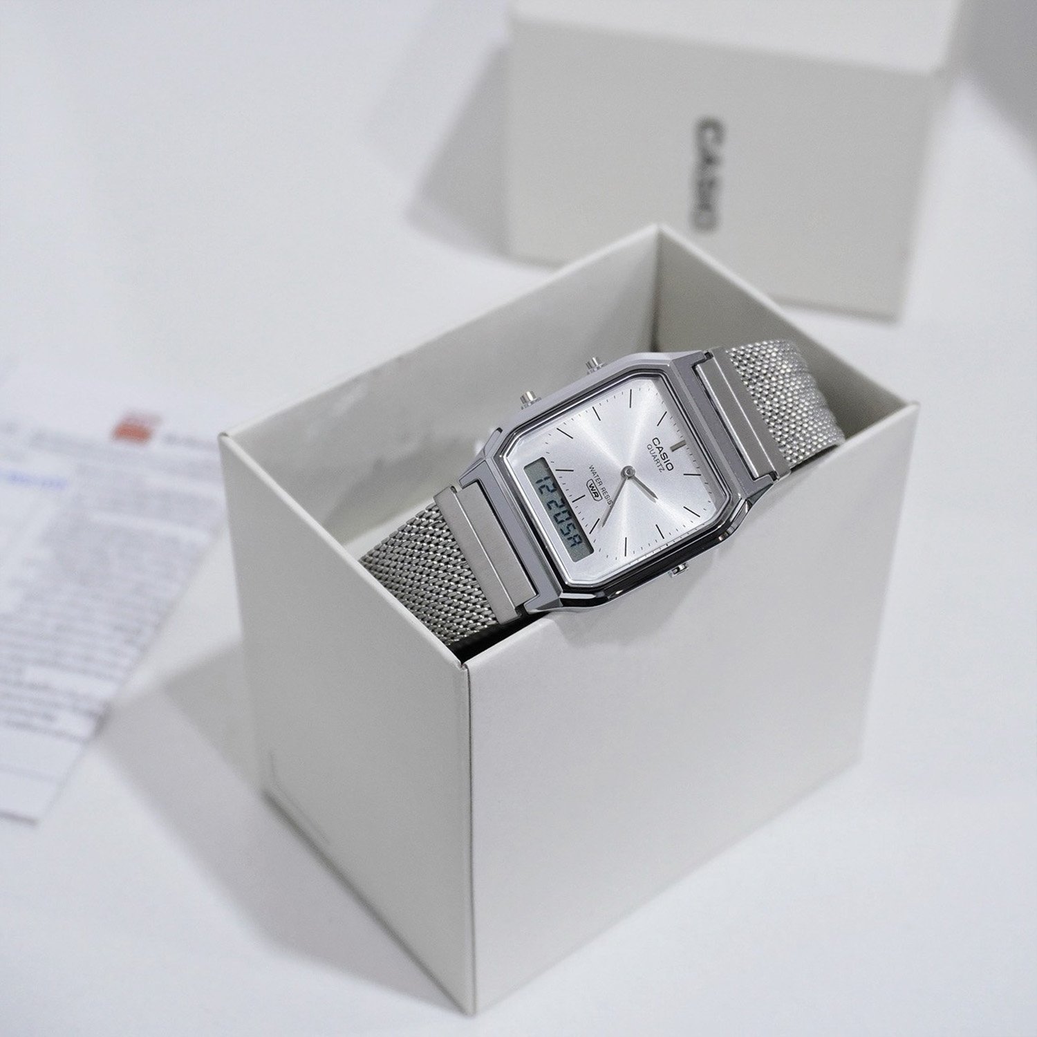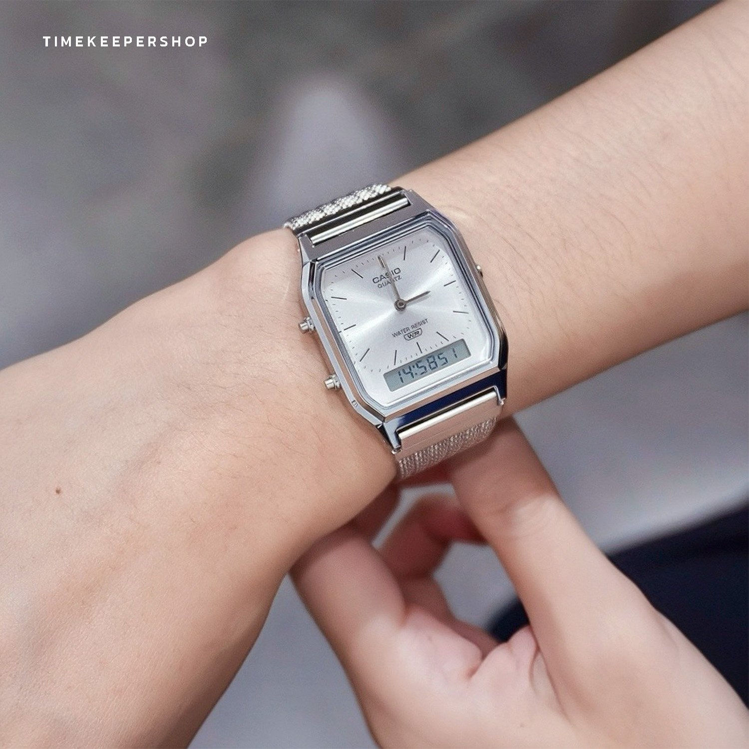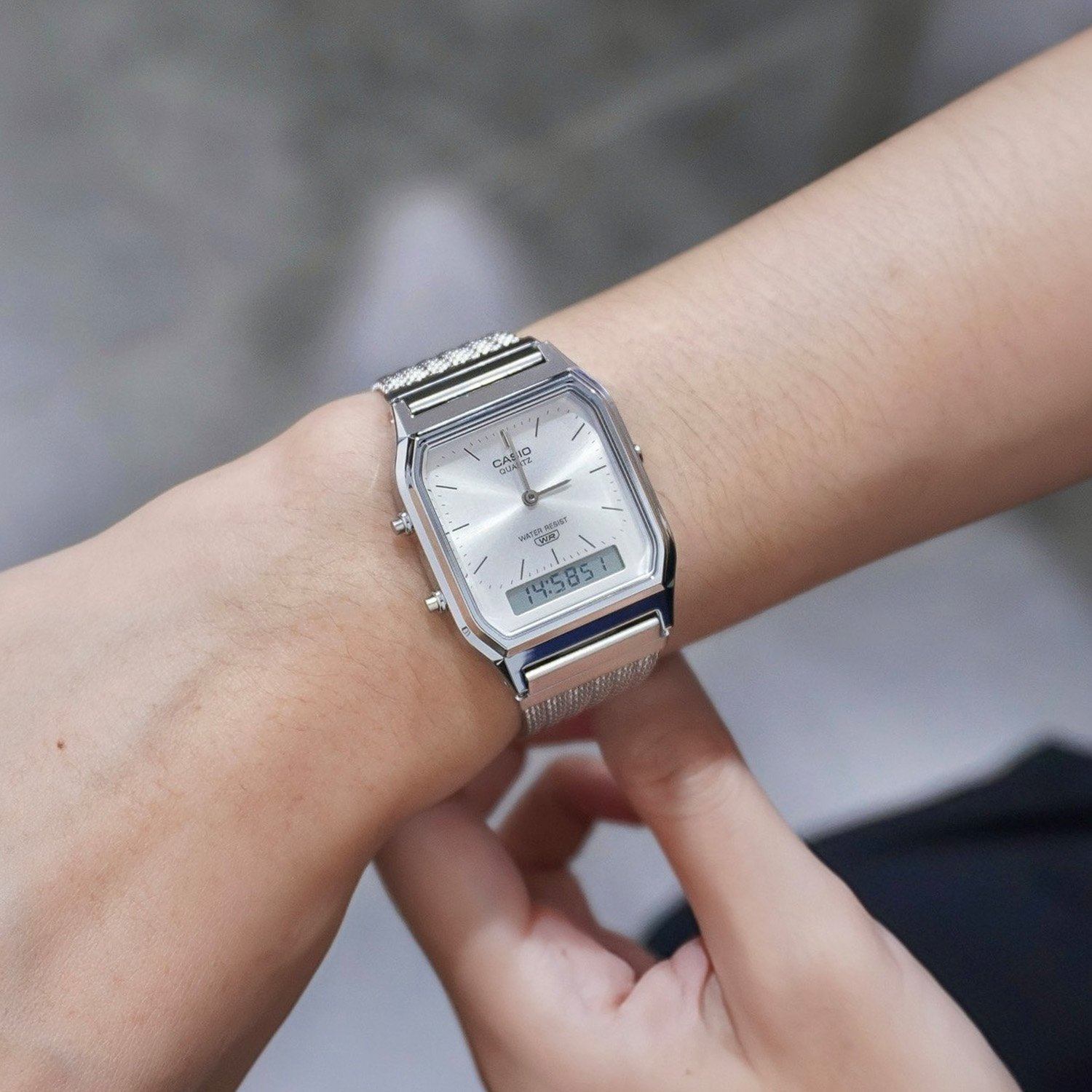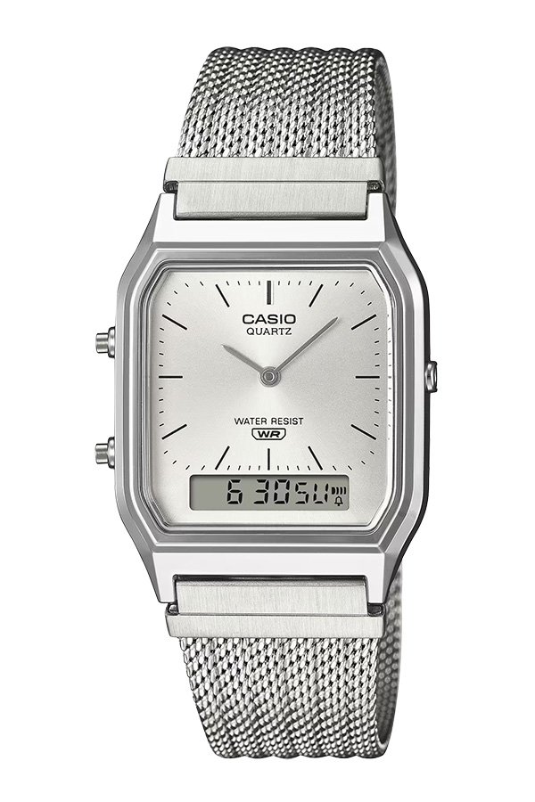 Casio Standard นาฬิกาข้อมือผู้ชาย สายสเตนเลส รุ่น AQ-230EM-7A - สีเงิน