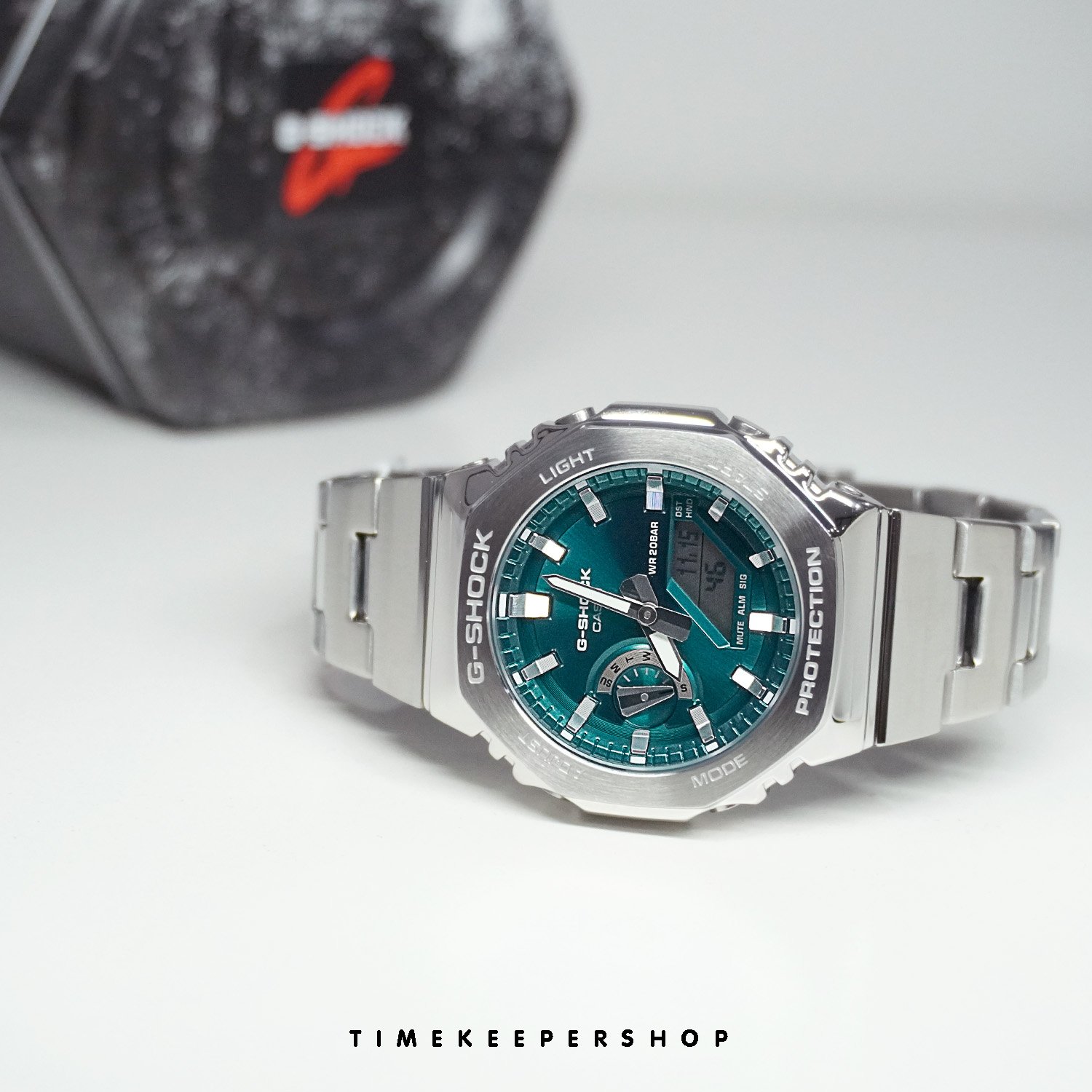 Casio G-Shock นาฬิกาข้อมือผู้ชาย สายสเตนเลส รุ่น GM-2110D-3A1 - สีเงิน/เขียว