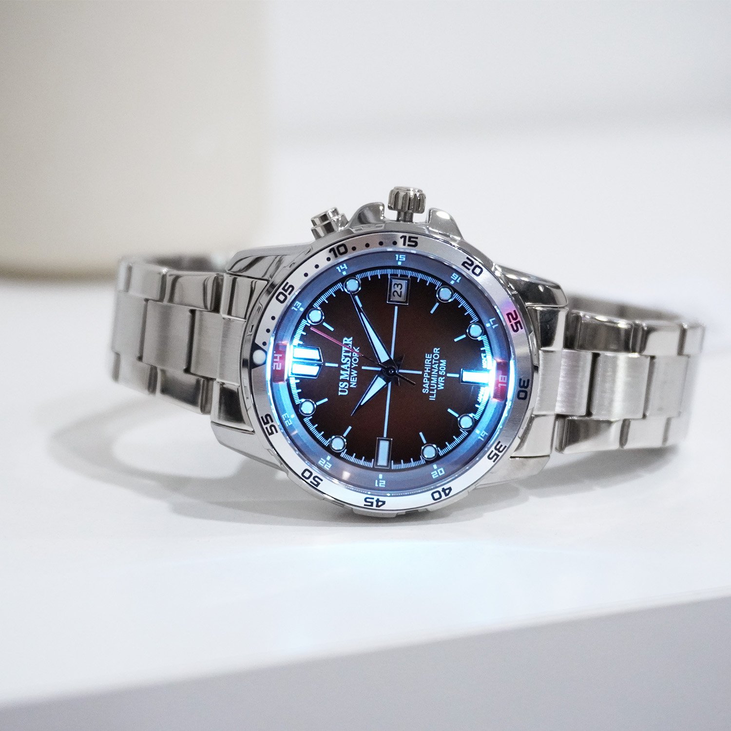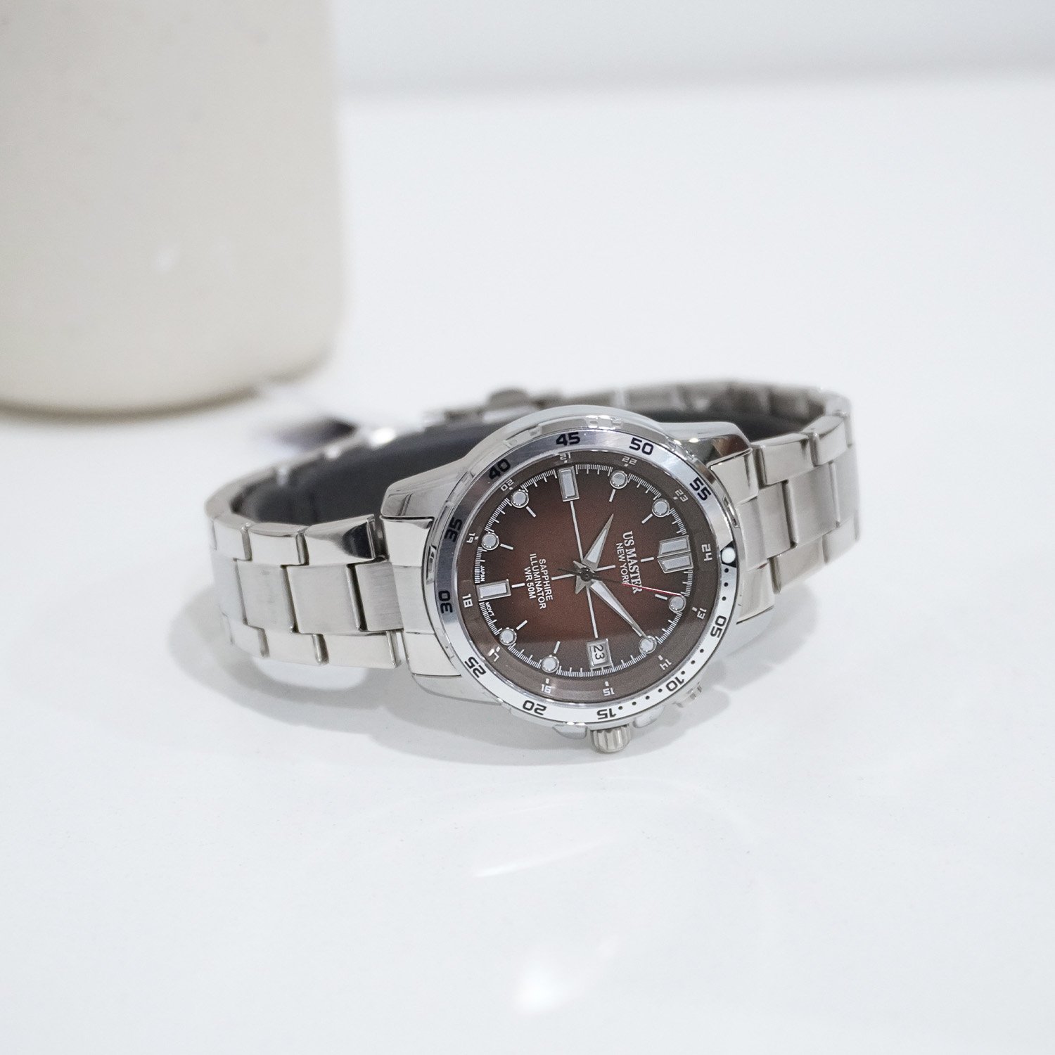 US MASTER NEW YORK นาฬิกาข้อมือผู้หญิง สายสแตนเลส รุ่น USM-EC08A-BR - สีเงิน/น้ำตาล