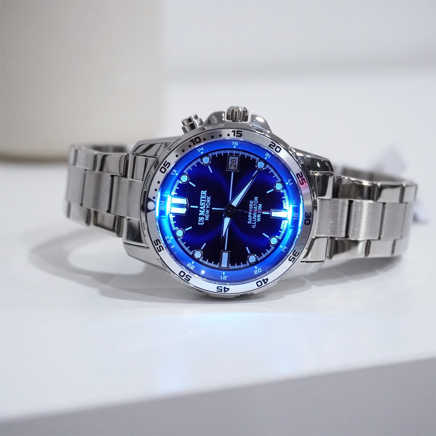 US MASTER NEW YORK นาฬิกาข้อมือผู้หญิง สายสแตนเลส รุ่น USM-EC08A-BU - สีเงิน/น้ำเงิน