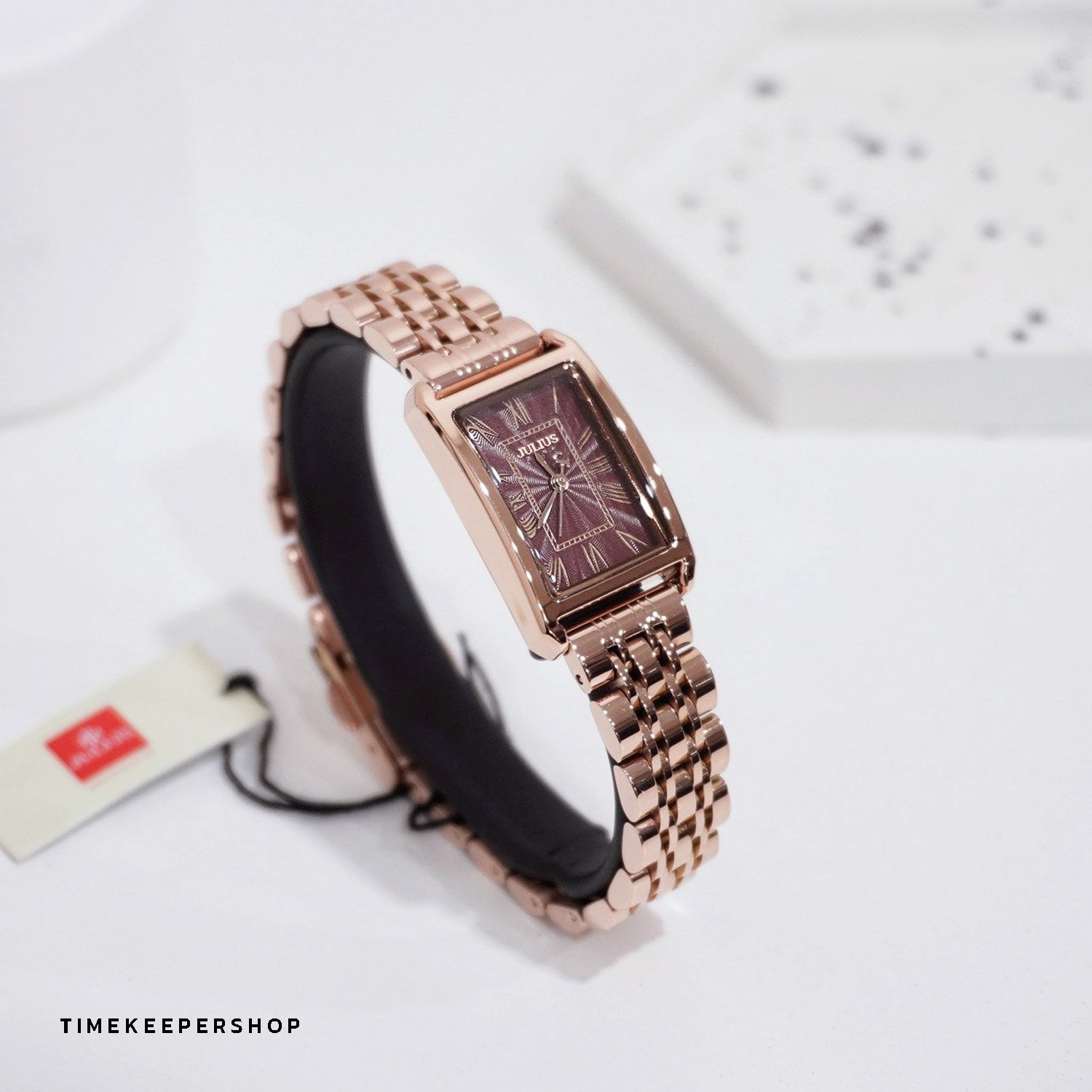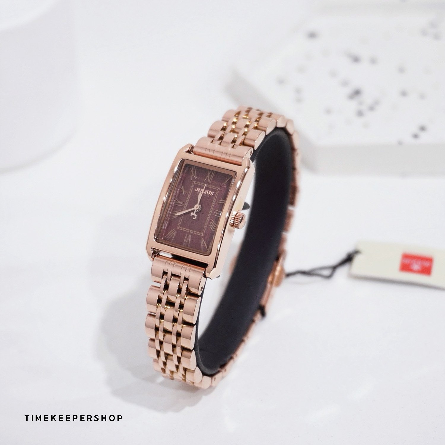 Julius นาฬิกาข้อมือผู้หญิง สายสแตนเลส รุ่น JA-1252C - สีพิงค์โกลด์/น้ำตาล
