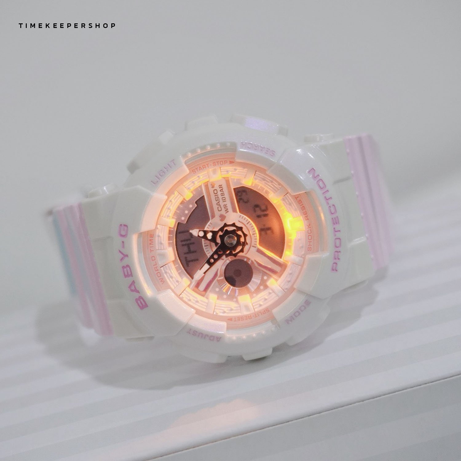 Casio Baby-G นาฬิกาข้อมือผู้หญิง สายเรซิน รุ่น BA-110PD-4A - สีขาวชมพู