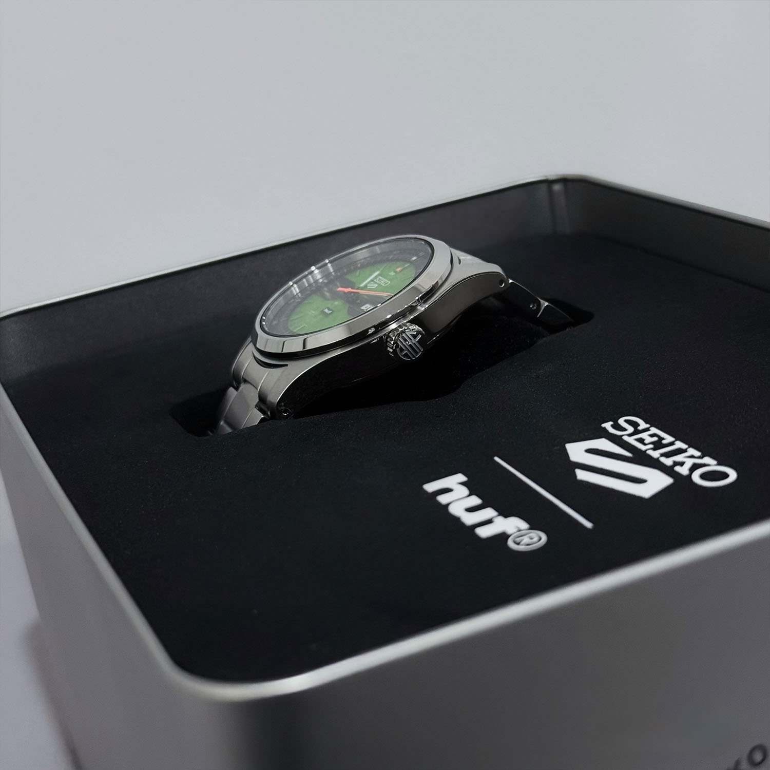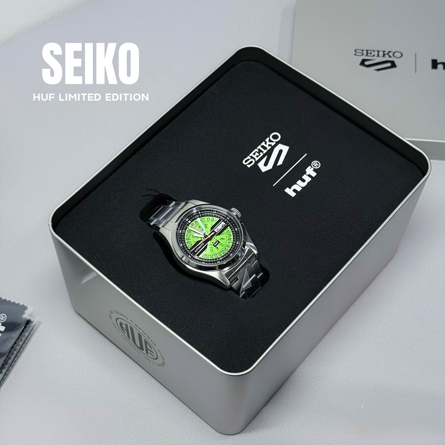 Seiko 5 Sports HUF Limited Edition รหัส SRPM09K ผลิตจำนวนจำกัดเพียง 7,000 เรือนทั่วโลกเท่านั้น โดยมาพร้อมกล่องบรรจุภัณฑ์ดีไซน์พิเศษที่ออกแบบมาเฉพาะรุ่น เพื่อสะท้อนถึงความร่วมมืออันแน่นแฟ้นระหว่างทั้งสองแบรนด์ เป็นเรือนเวลาที่ตอบโจทย์ทั้งนักสะสมนาฬิกาและผู้ที่หลงใหลในแฟชั่นสตรีทคัลเจอร์ที่มองหาความแตกต่างอย่างมีสไตล์