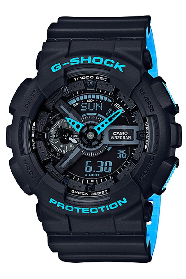 Casio G-Shock นาฬิกาข้อมือผู้ชาย สายเรซิ่น รุ่น GA-110LN-1A - สีดำ/ฟ้า