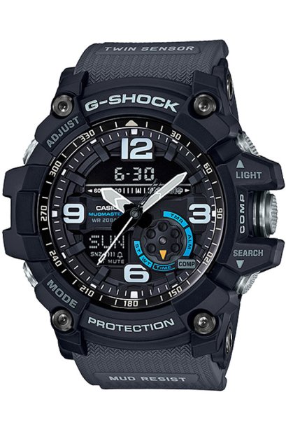 นี่คือนาฬิกาเรือนล่าสุดใน MASTER OF G MUDMASTER Series โครสร้างป้องกันโคลนช่วยให้ผู้สวมใส่มั่นใจได้ว่าจะไม่มีสิ่งสกปรกใดที่สามารถเข้าไปในนาฬิกาได้เมื่อต้องเข้าไปทำงานในพื้นที่ที่มีดินโคลน ปะเก็นหลากหลายชุดถูกใช้กับแกนที่ควบคุมปุ่มและก้านปุ่ม ซึ่งช่วยป้องกันโคลน แกนเหล่านี้ไม่เพียงป้องกันปุ่มไม่ให้เกิดการกระแทกเท่านั้น แต่ยังช่วยเสริมประสิทธิภาพการใช้งานปุ่มด้วย