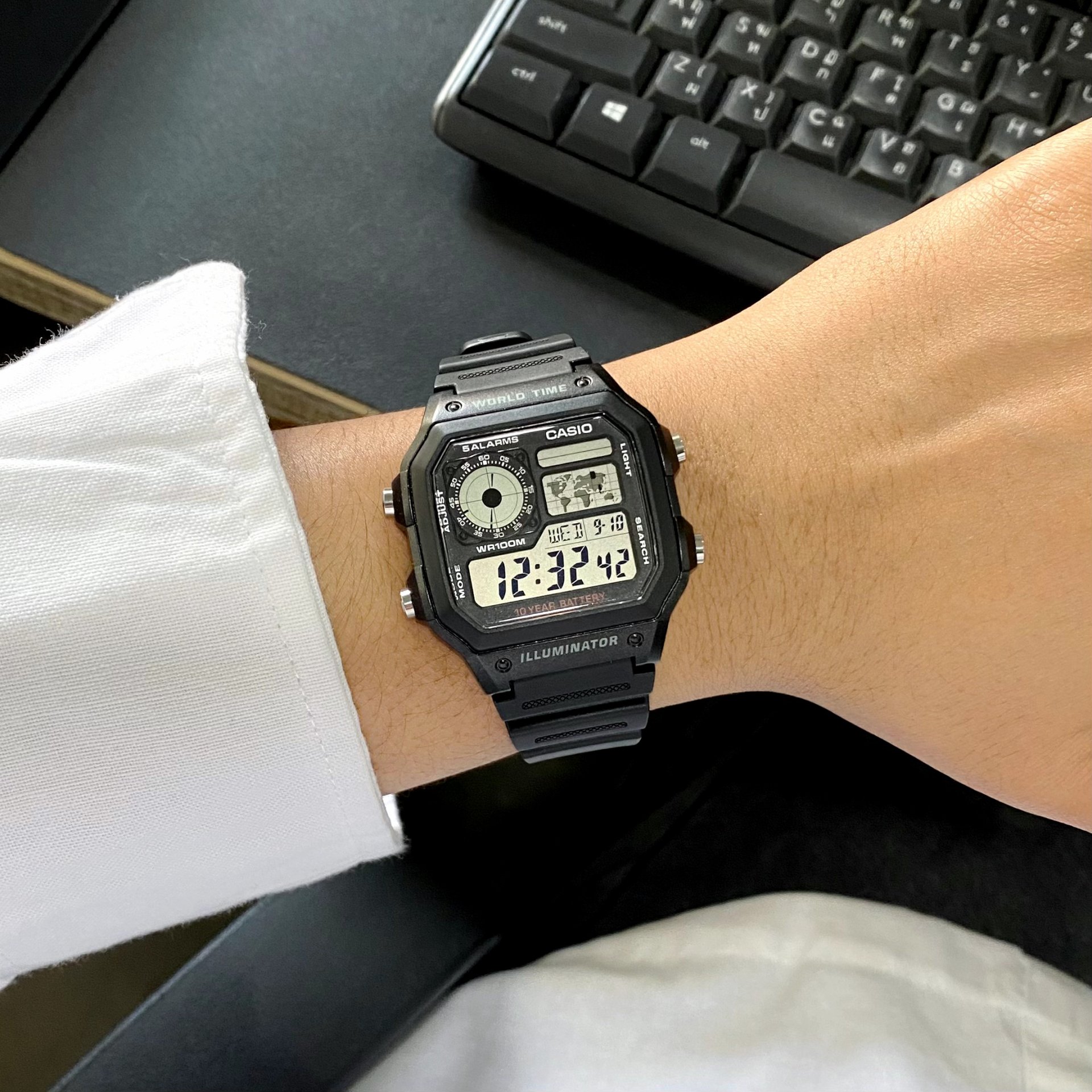 Casio Standard นาฬิกาข้อมือผู้ชาย สายเรซิ่น รุ่น AE-1200WH-1A - สีดำ